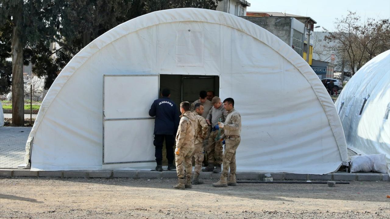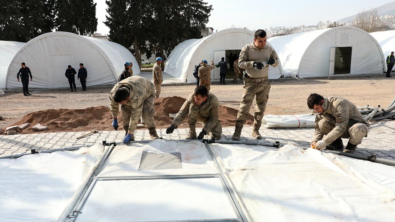Kahramanmaraş'ta 6 Şubat'taki ilk depremde yıkılan Onikişubat ilçesi Şazibey Mahallesi Odun Ambarı mevkisinde faaliyet gösteren kuru gıda toptancılar sitesi, askerler tarafından kurulan çadırlarda hizmet vermeye devam edecek.