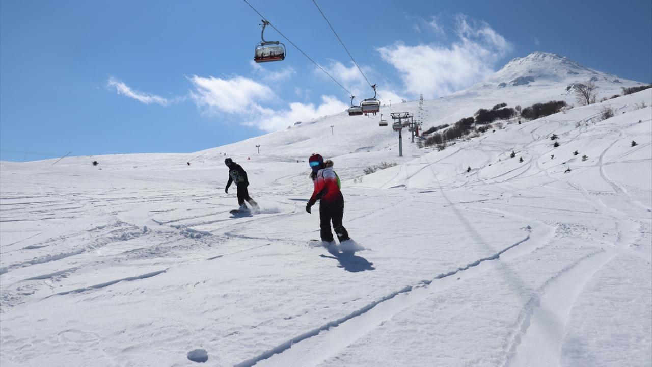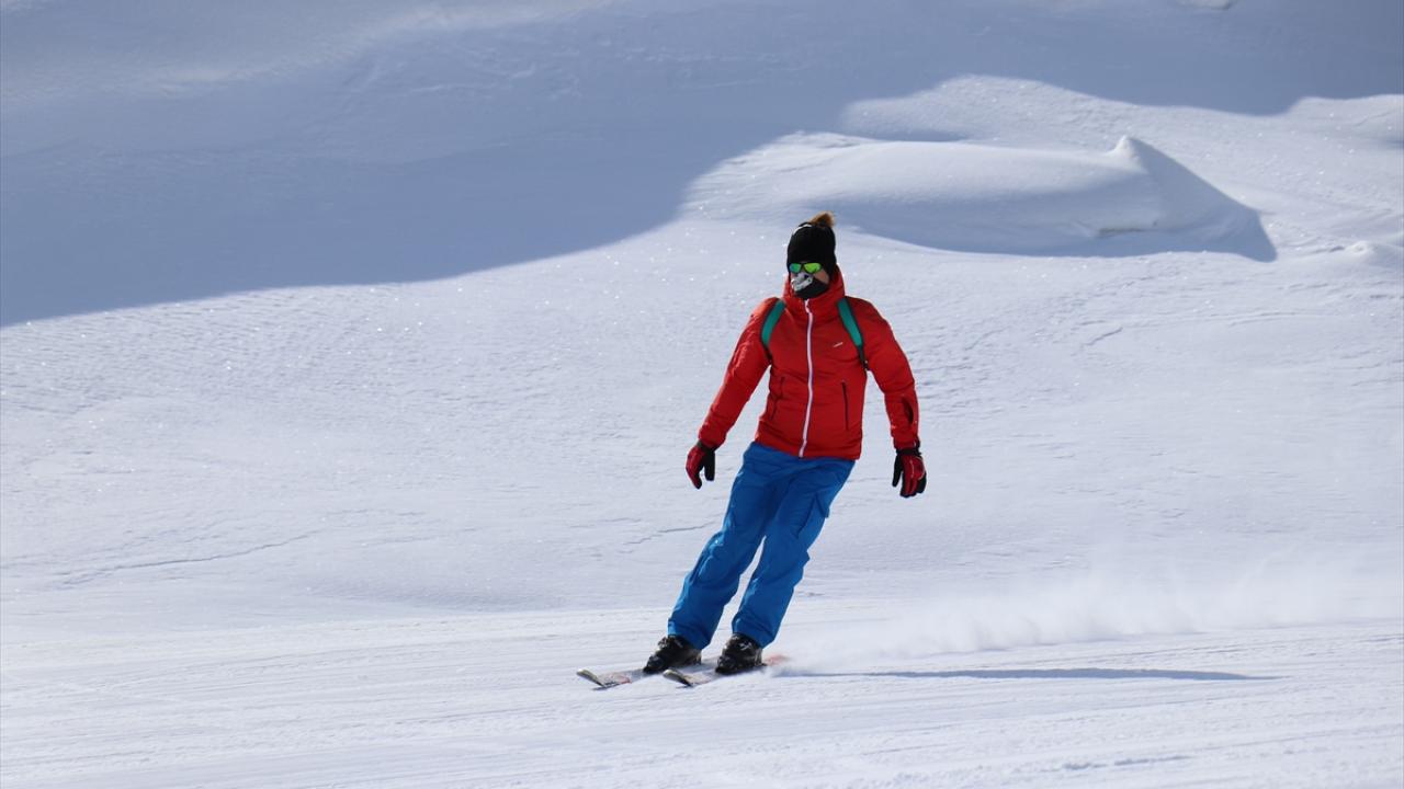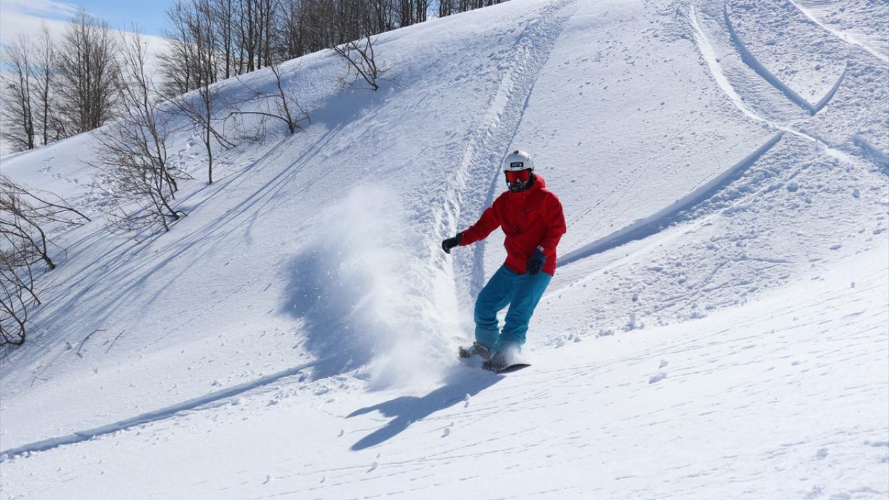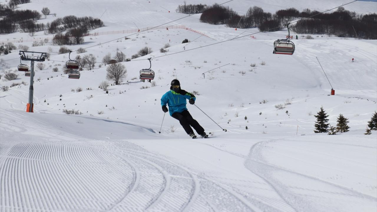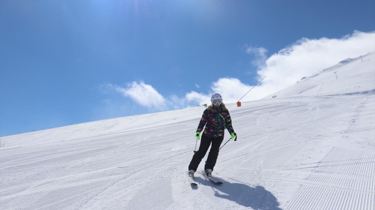 Kar kalınlığının 140 santimetreye ulaştığı merkeze gelen ziyaretçiler, mart ayında kayak yapmanın keyfini yaşıyor.