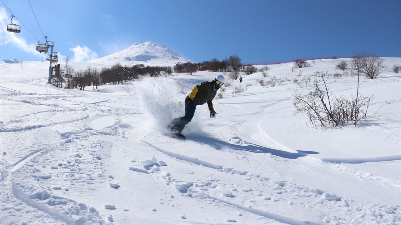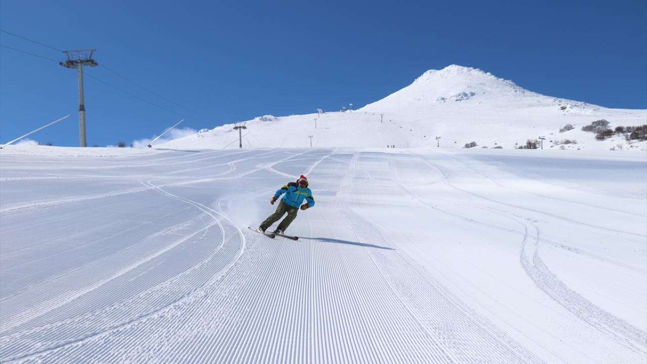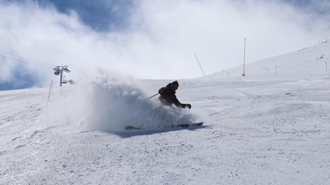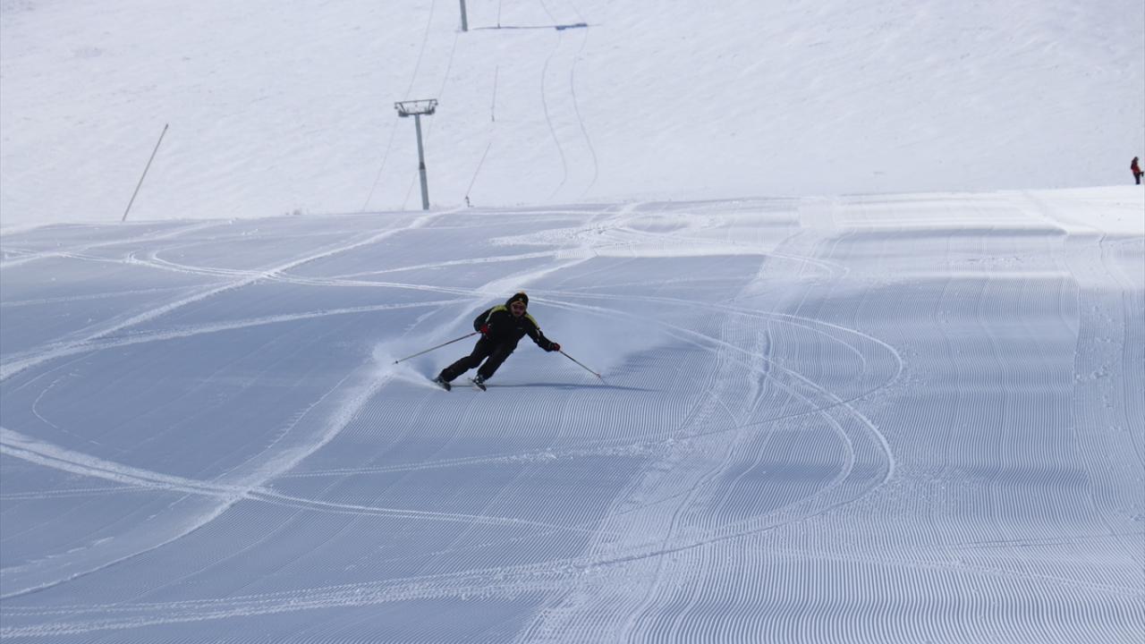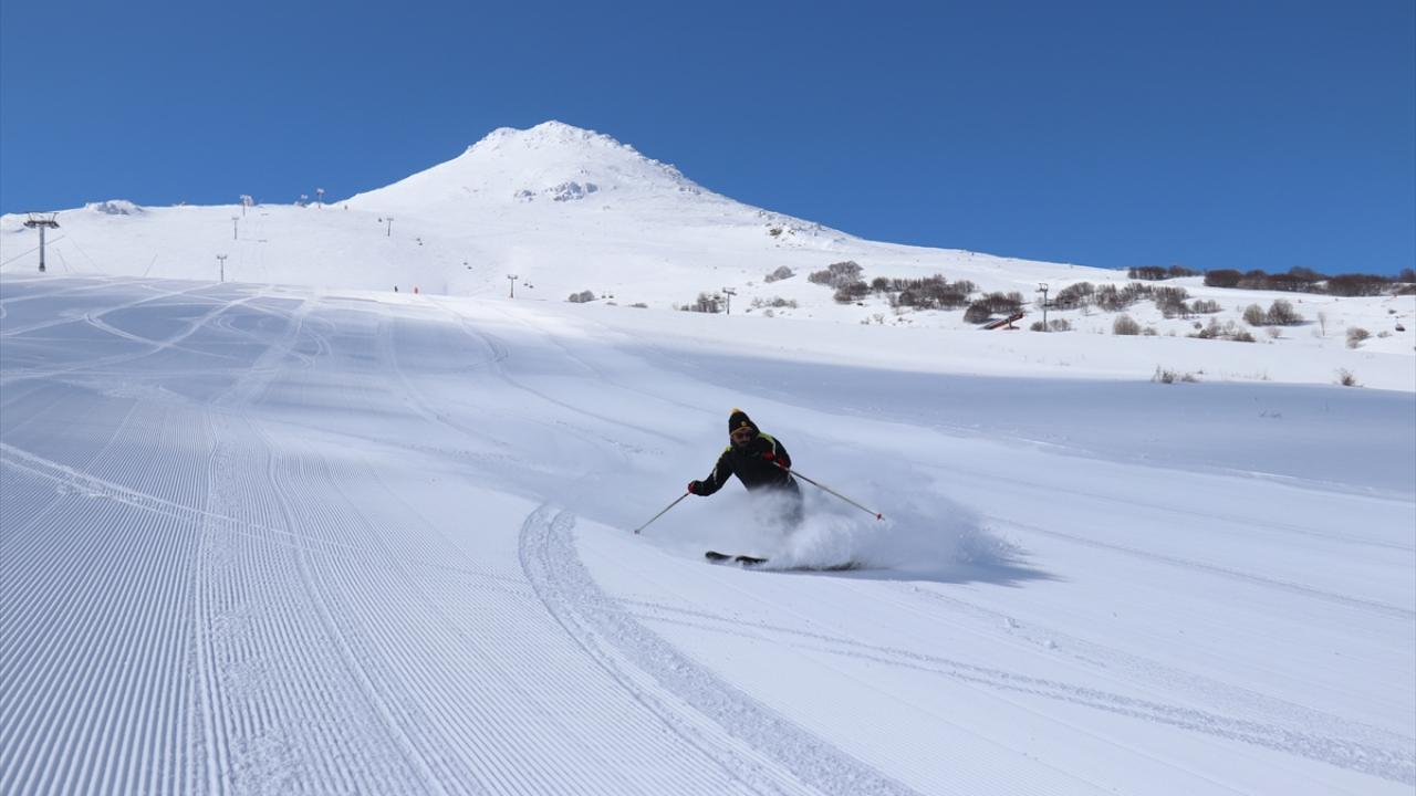 Kar kalınlığının 140 santimetreye ulaştığı merkeze gelen ziyaretçiler, mart ayında kayak yapmanın keyfini yaşıyor.