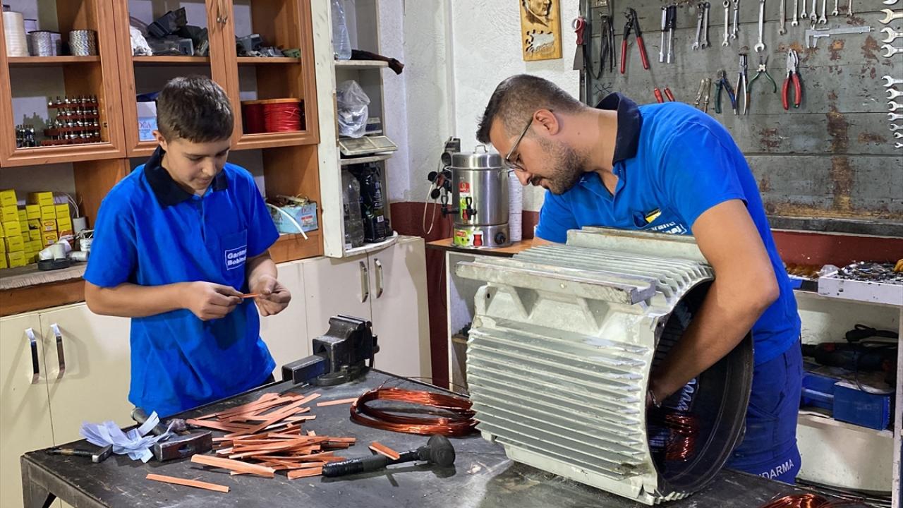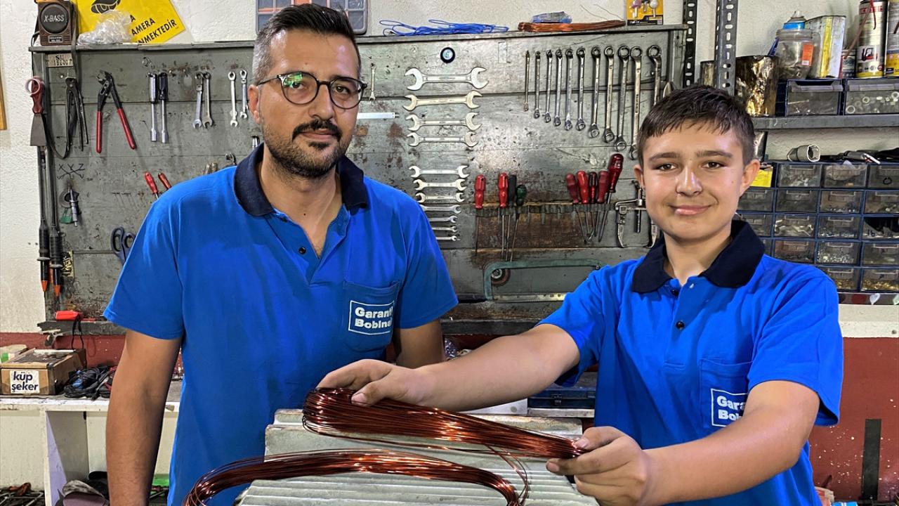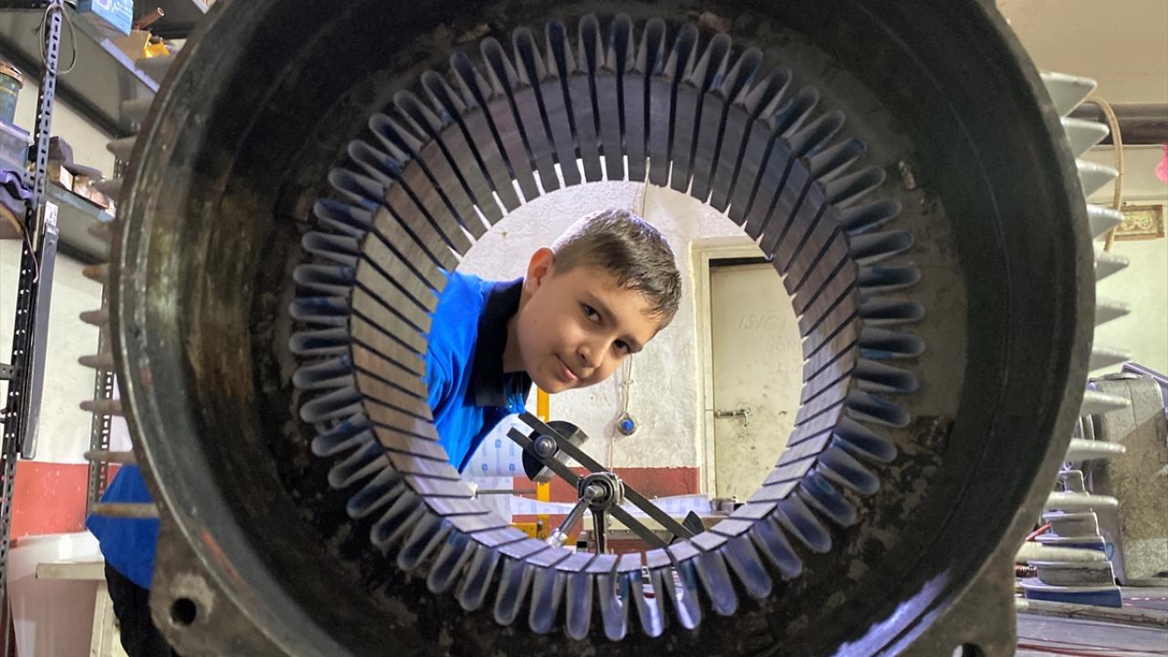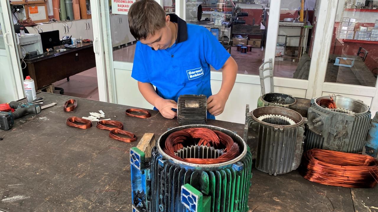 Kırşehir Badem Pınarı Mesleki Eğitim Merkezi Bobinaj Elektrik Bölümü 10`uncu sınıf öğrencisi olan Çakır, mesleğini uygulamalı olarak öğrenmesi için okulu tarafından 2 yıl önce yönlendirildiği Kılıçözü Sanayi Sitesi`ndeki bobinaj atölyesinde özveriyle çalışıyor.
