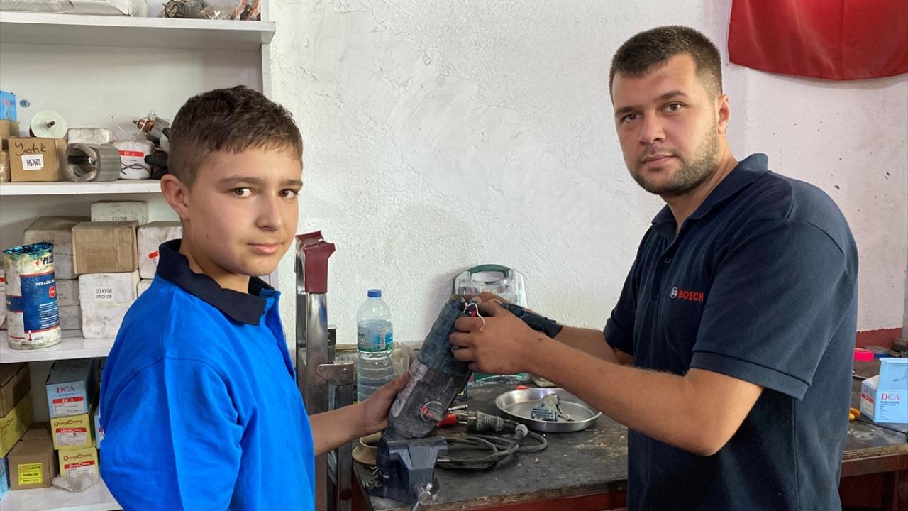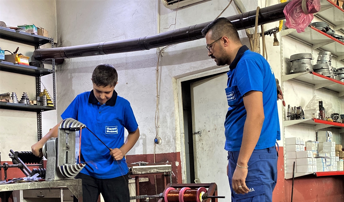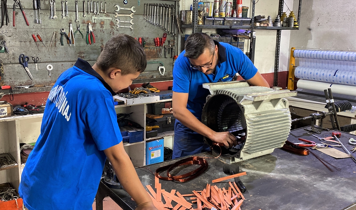 Hem okulda teorik bilgi öğrendiğini hem de iş yerinde uygulamalı eğitim aldığını belirten Çakır, "Sabah 08.00`de gelip ustalarımı bekliyorum. Onlar geldikten sonra işe başlıyoruz. Öğrendiğim meslek çok güzel. Bize gelen yanık motorların arızalarını çözüyoruz. Elektrik hatasından mı başka hatalardan mı yandı onu kontrol edip, tamir ve bakımını yapıyoruz." dedi.
