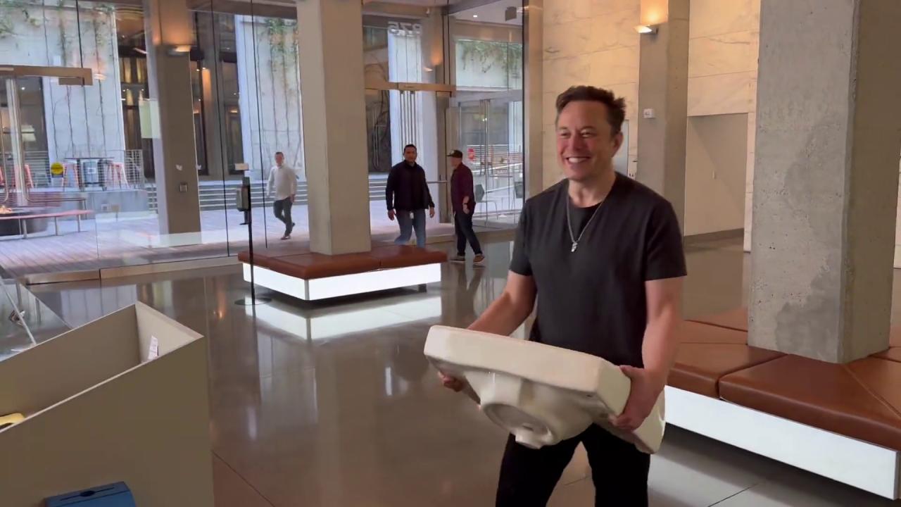 Elon Musk, satın aldığı Twitter’ın genel merkezine elinde bir lavaboyla girdi.