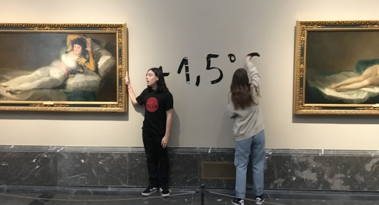 Ünlü ressam Goya`nın İspanya`da sergilenen tablolarına ellerini yapıştırdılar.