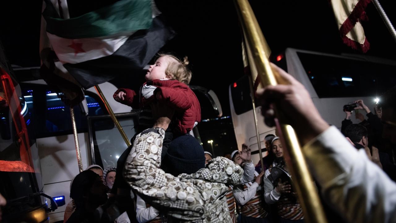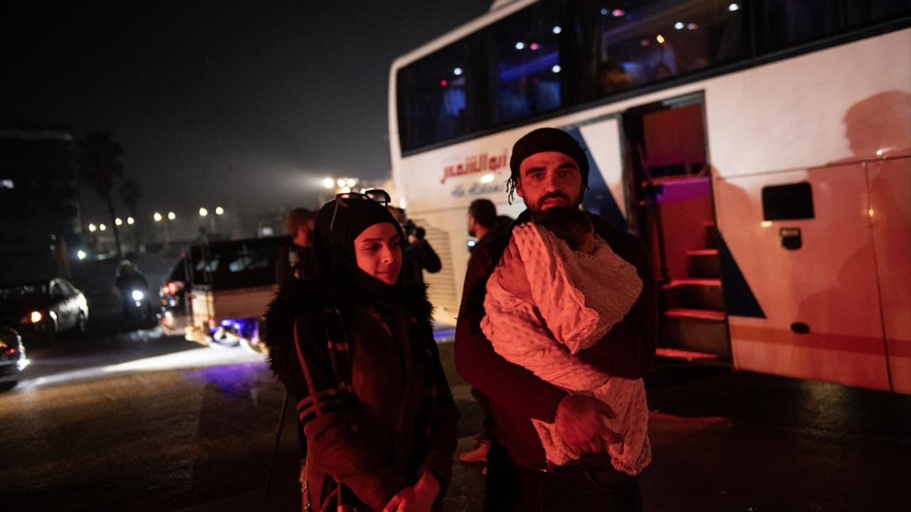 Suriye'de devrik Beşşar Esed rejiminin yıllarca abluka ve yoğun saldırılar nedeniyle zorla göç ettirdiği Şam’ın Doğu Guta ve Cober bölgelerindeki Suriyeliler, evlerine geri dönmek için otobüslerle Şam’a ulaştı.