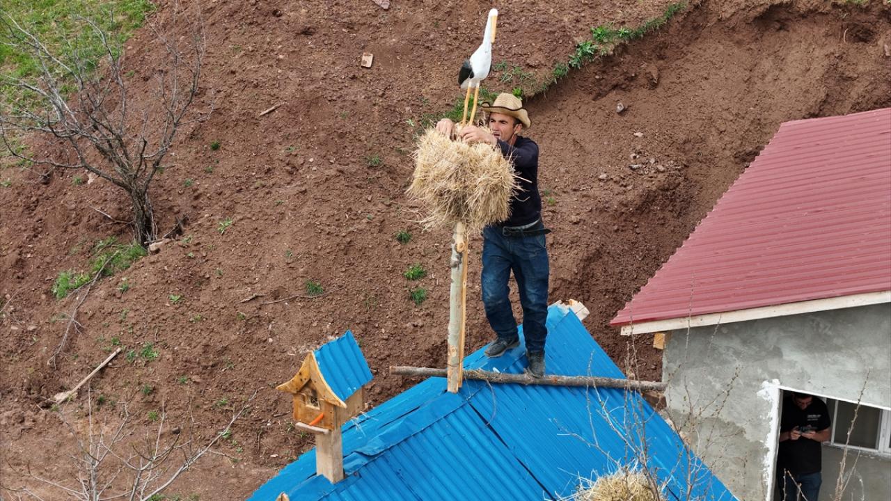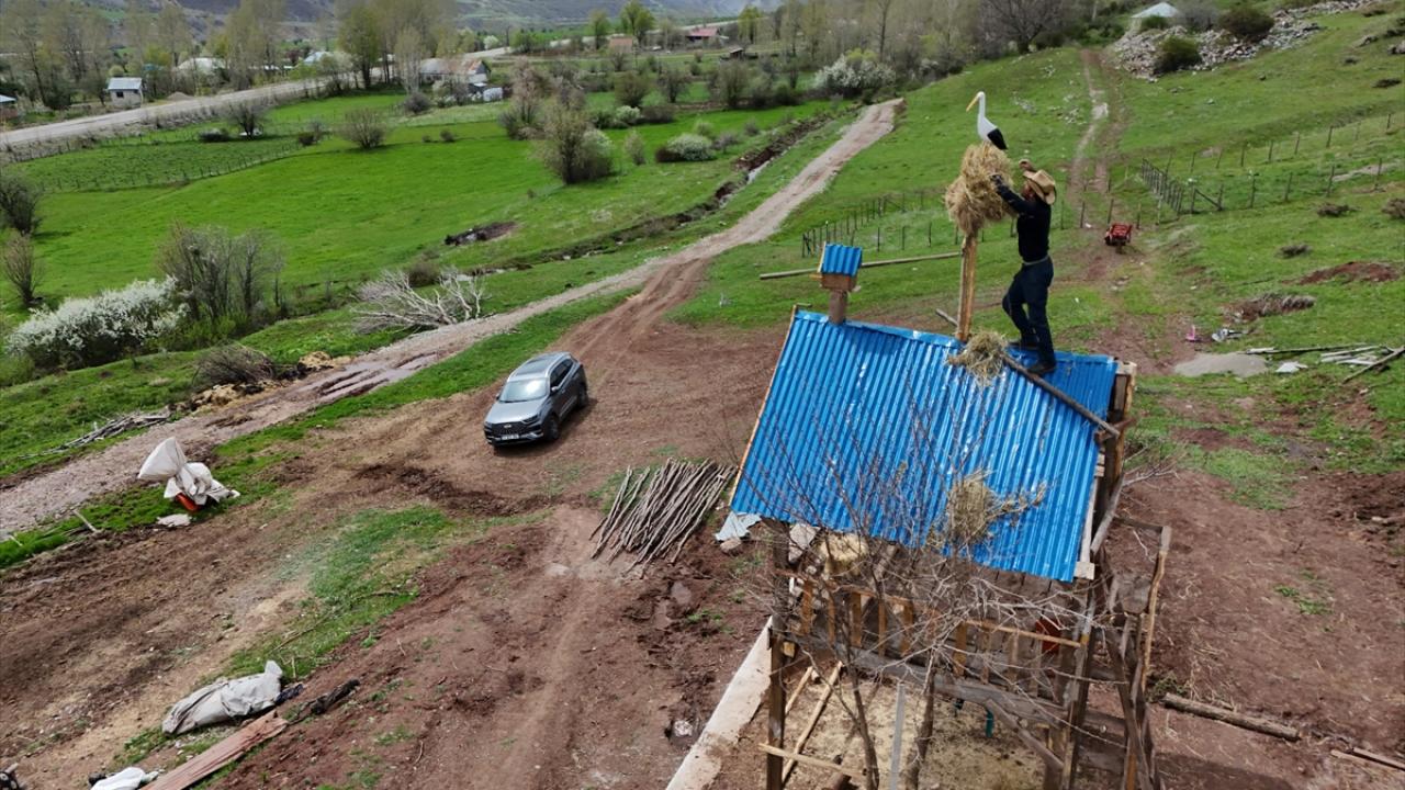 Bingöl'ün Yedisu ilçesinde 1993'te terör örgütü PKK'nın saldırıları nedeniyle ailesiyle terk ettiği köyüne 6 yıl önce dönen Ahmet Zeki Samur, çocukluğunda gördüğü leyleklerin de yeniden köye gelmesi için yuva yaptı.