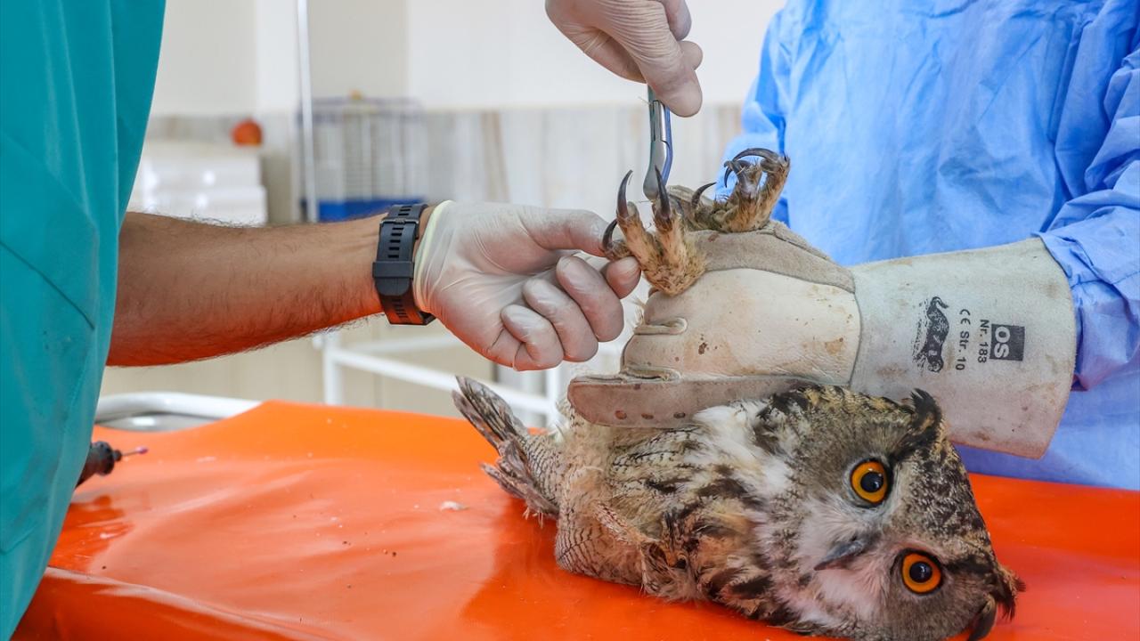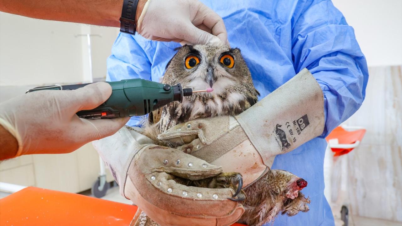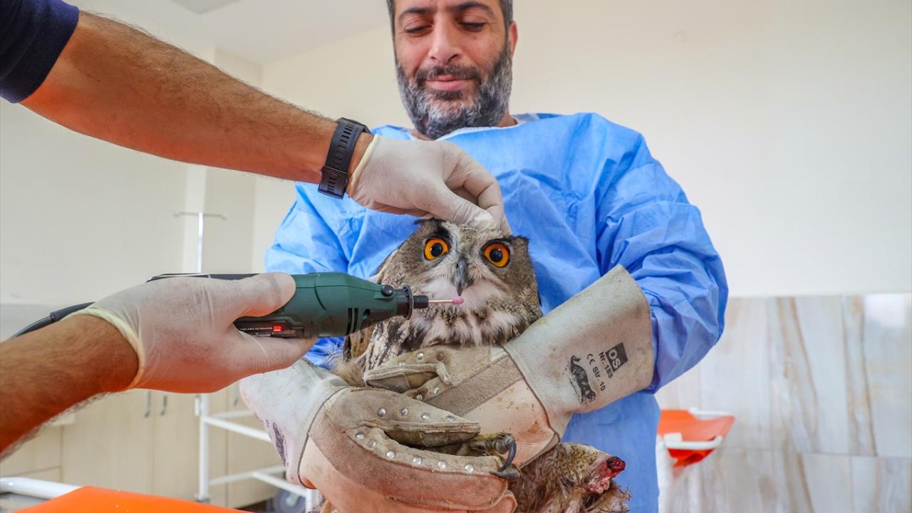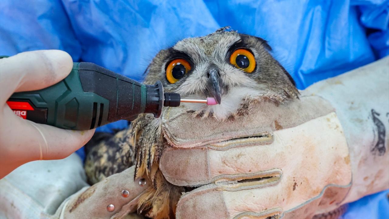 Diyarbakır'da Dicle Yaban Hayvanı Kurtarma ve Rehabilitasyon Merkezine yaralı getirilen ve tedavilerinin ardından uçma yetisini kaybettikleri için burada koruma altına alınan yırtıcı kuşlara gaga ve tırnak bakımı uygulanıyor.
