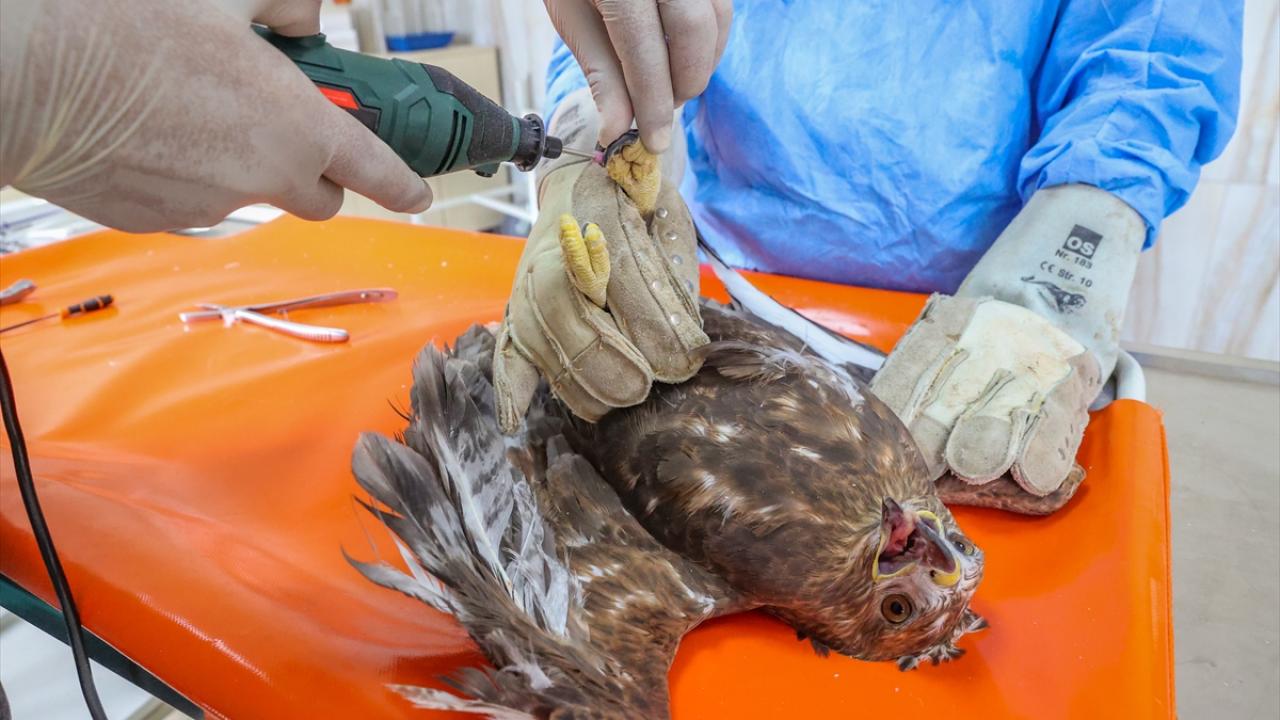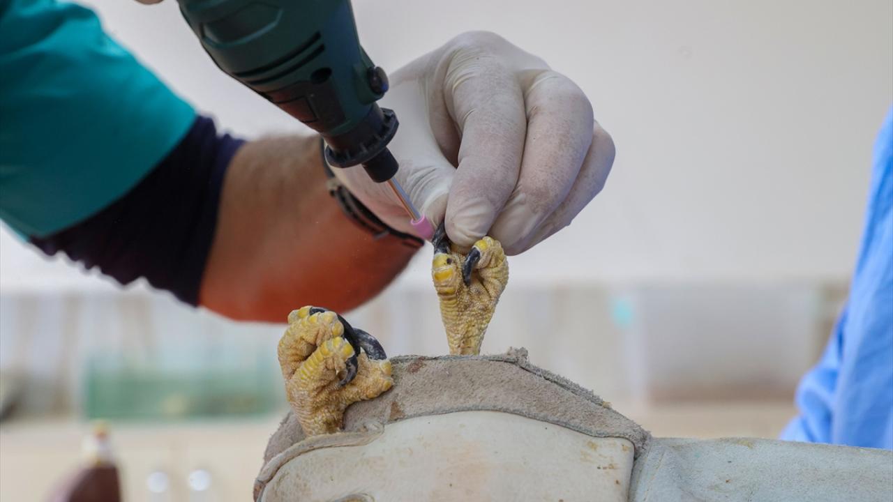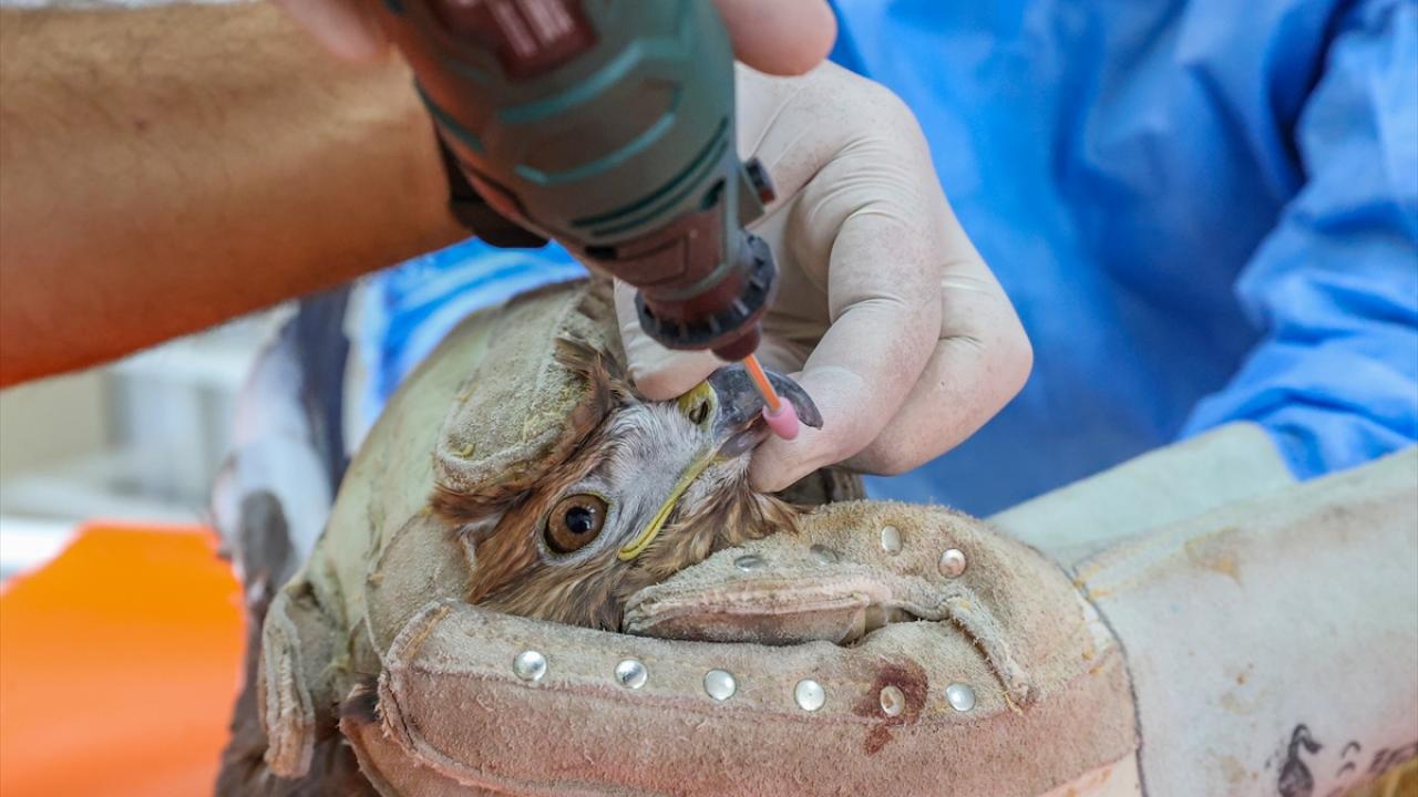 Merkezde kalan yırtıcı kuşlara beslenme sistemlerinin korunması amacıyla gaga ve tırnak bakımı uygulanıyor.
