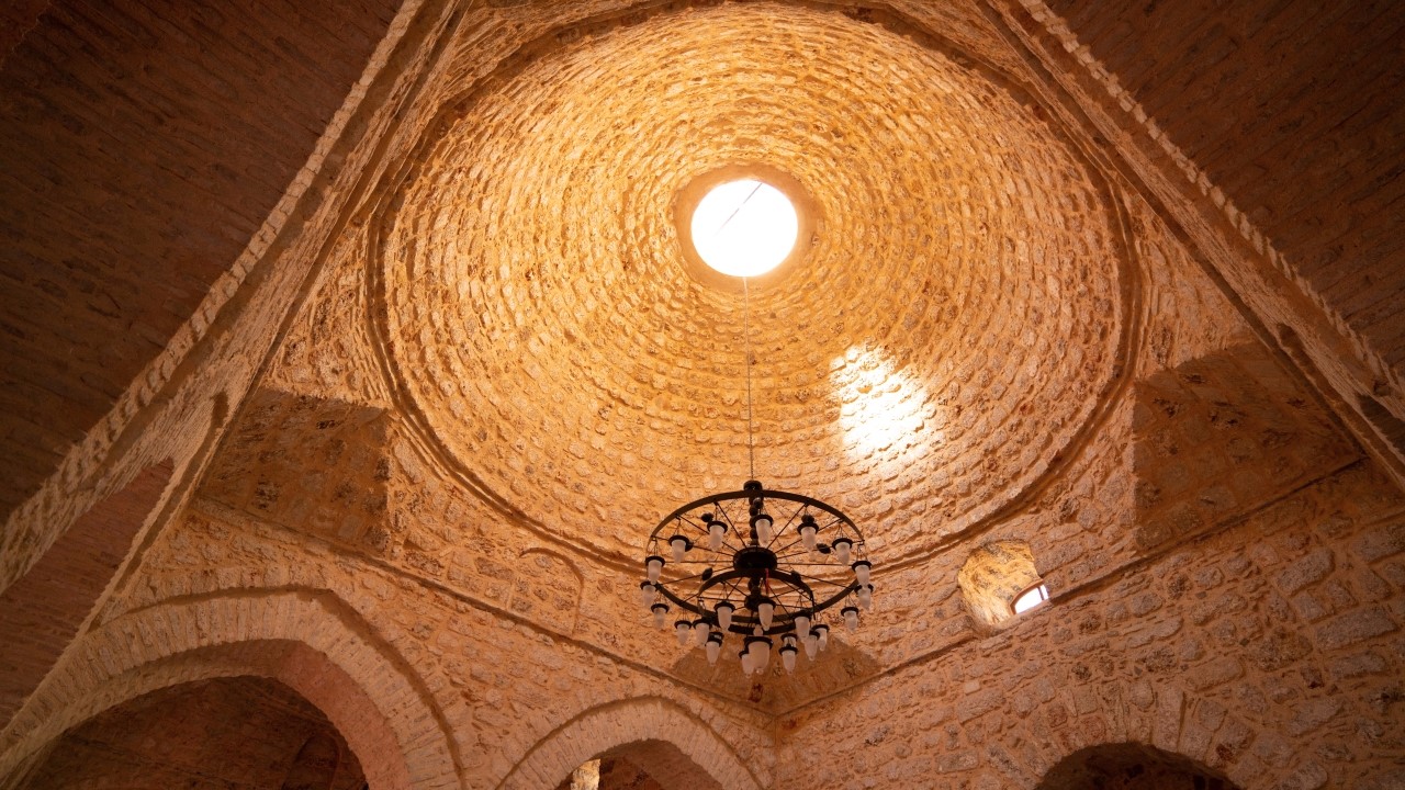 Su kanalları ve biriktirme küplerinden oluşan bir ısıtma ve soğutma sistemine de sahip olan caminin yapımında farklı dönemlere ait devşirme malzemeler de kullanılmış.