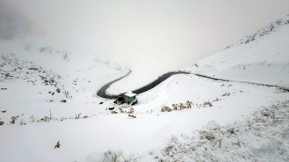 Bahçesaray ilçesi ile ulaşımın sağlandığı kara yolundaki 2 bin 985 rakımlı Karabet Geçidi kar yağışıyla beyaza büründü.