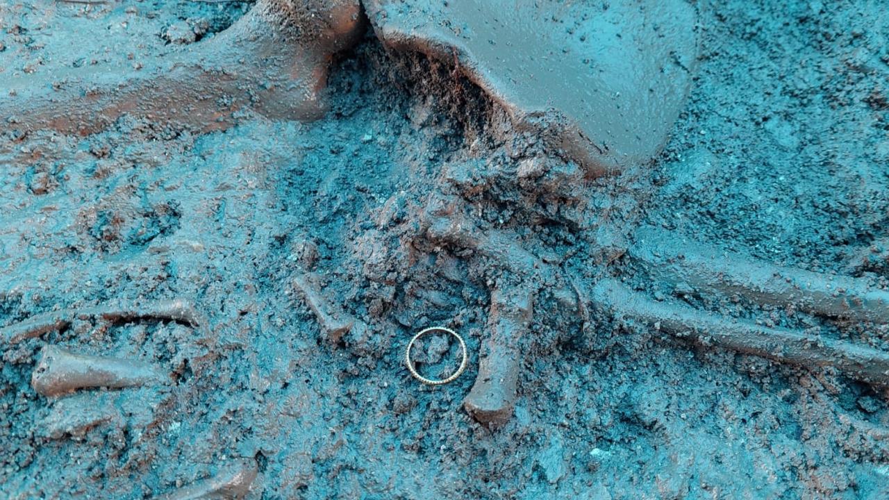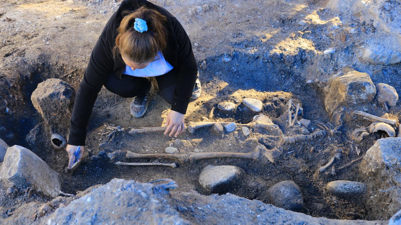 Bir mezardaki iskeletin sol parmak kısmında altın ve üzerinde Hermes figürünün betimlendiği kırmızı akik taşlı gümüş yüzükler bulunduğunu ifade eden Toparlak, iskeletin boyun kısmında kolye boncukları ile bronz kolye ucu, karın kısmında ise bronz kemer tokasına ulaşıldığını anlattı.