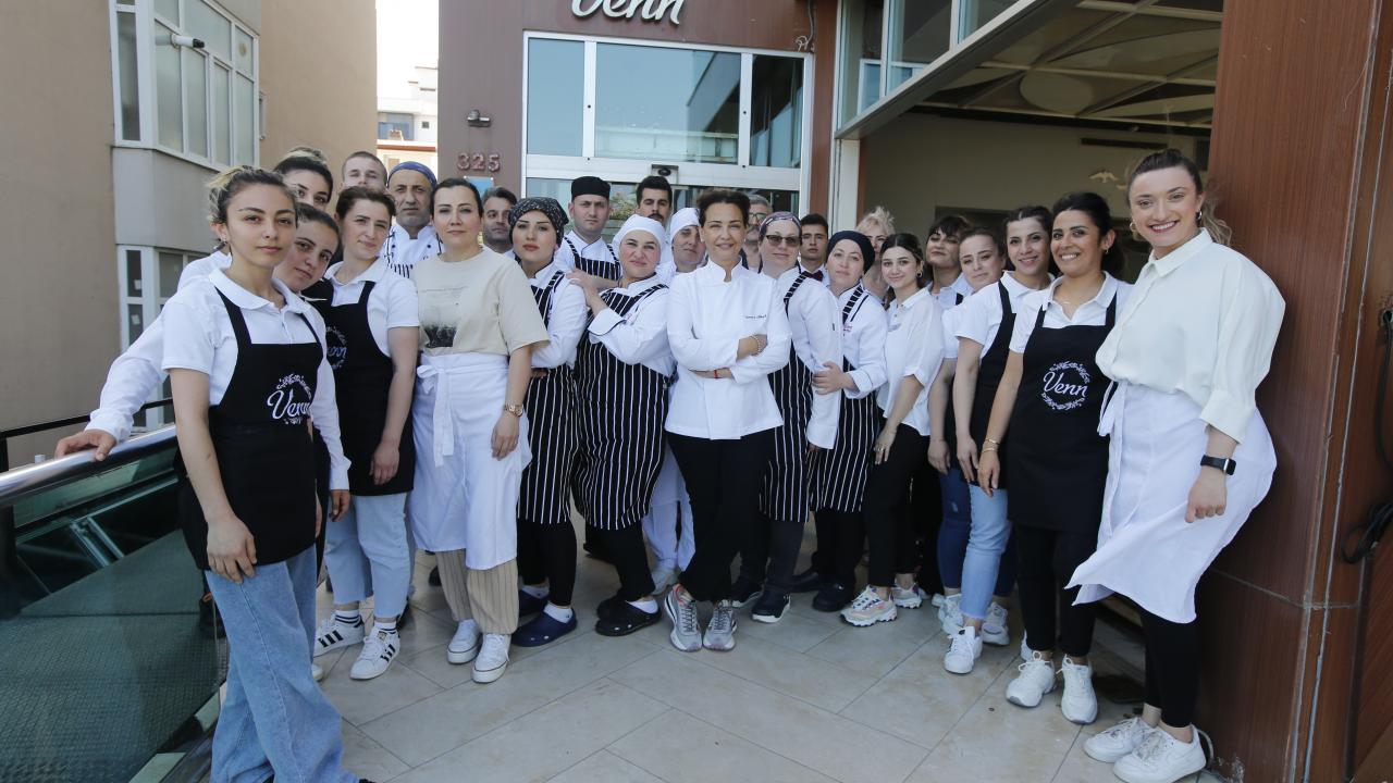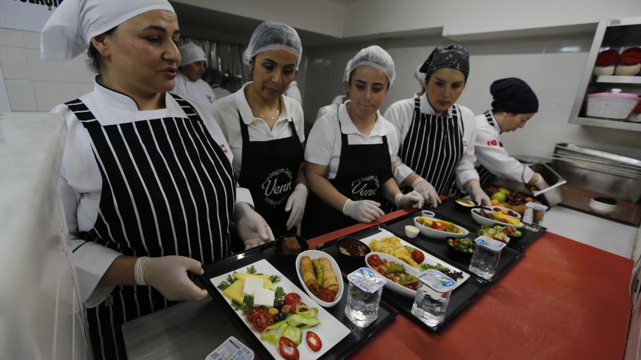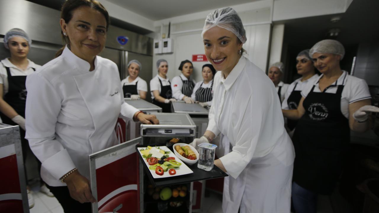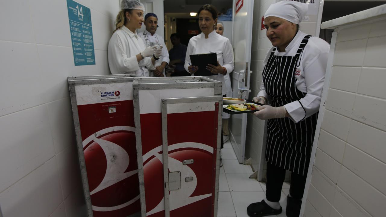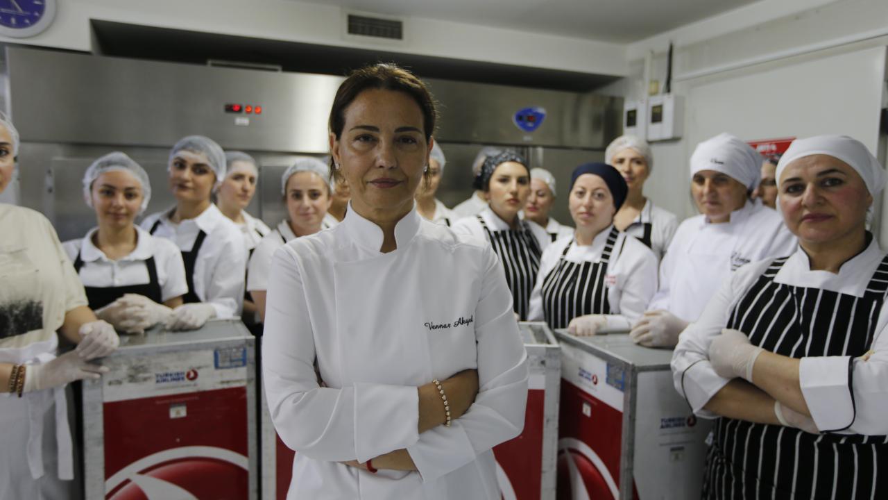 "147 çalışanım var. Kadınlara destek olmak adına ekibimde daha çok kadın çalıştırıyorum. Hijyen bizim için çok önemli. O yüzden uçak ikramı mutfağında yüzde 100 kadın çalışıyor. Sadece yüklemeler için beden gücüne ihtiyaç olduğu için erkekler var ekibimizde. Tedariğimizi de kadınlardan almaya özen gösteriyoruz. Kooperatiflerle yoğun çalışıyorum. Sebze ve meyveyi tarladan özellikle kadın üreticilerden almak için efor sarf ediyoruz."