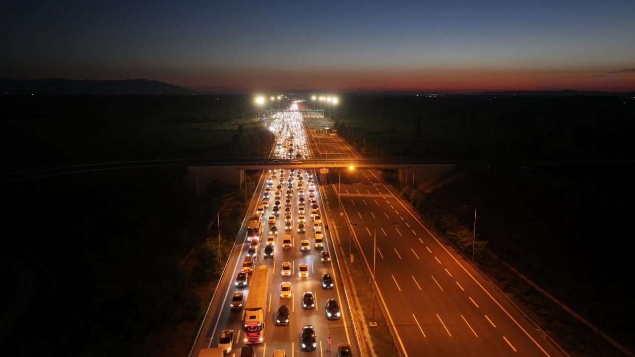 Bayram tatili için memleketine giden vatandaşlar, Anadolu Otoyolu ve Kuzey Marmara Otoyolu`nun Sakarya kesiminde yoğunluğa neden oldu.