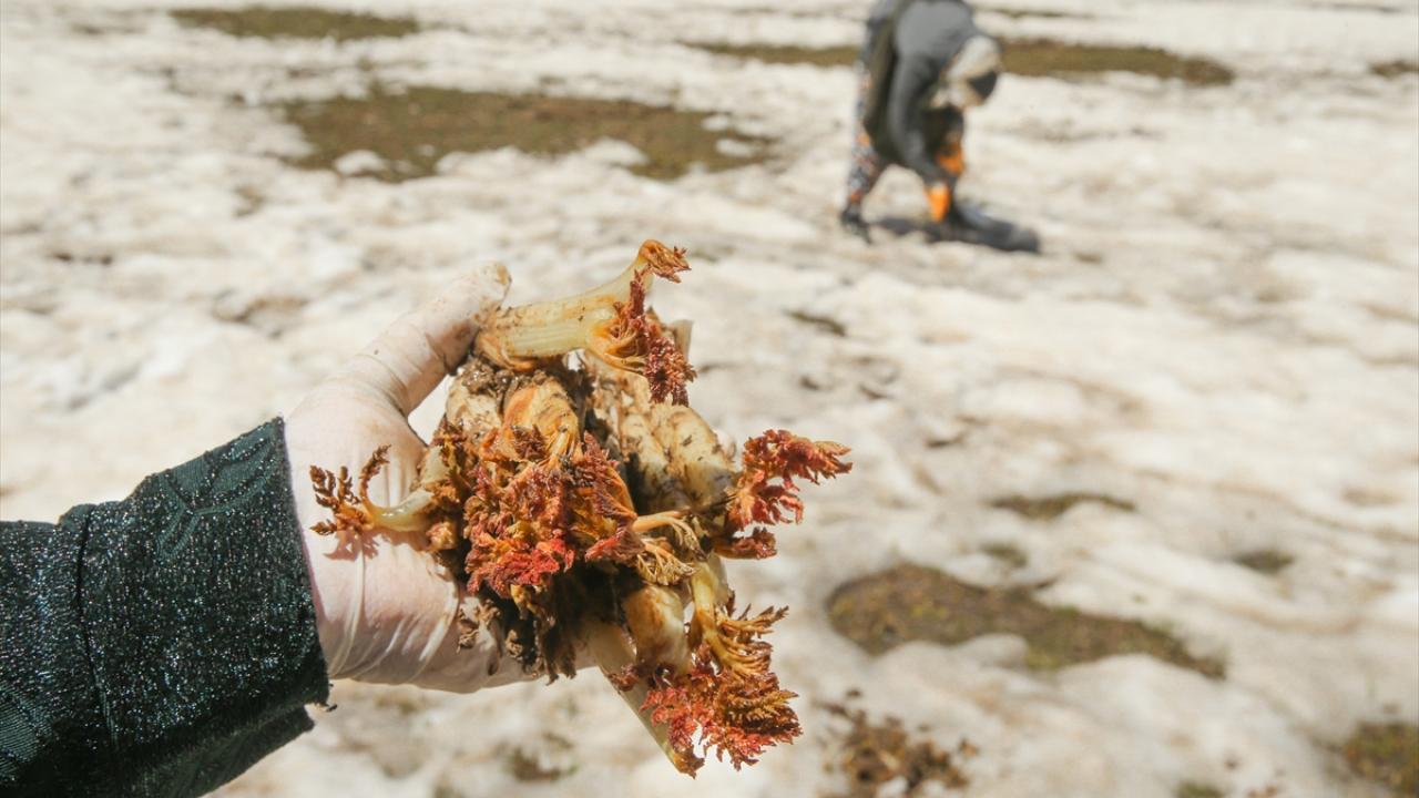 Mercan Bilici de kar altındaki otları toplamak için yaylaya geldiklerini kaydederek, "Burada mendo otunu topluyoruz. Kar altındaki otlar taze oluyor. Otu yöresel yemeklerde kullanıyoruz. Çok lezzetli oluyor." ifadesini kullandı.