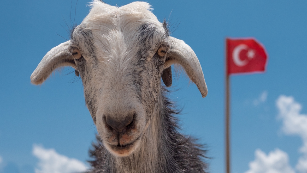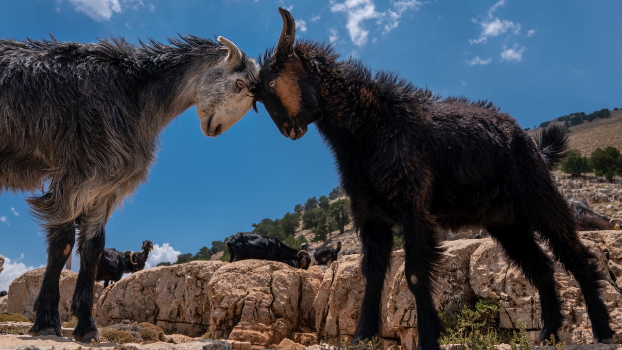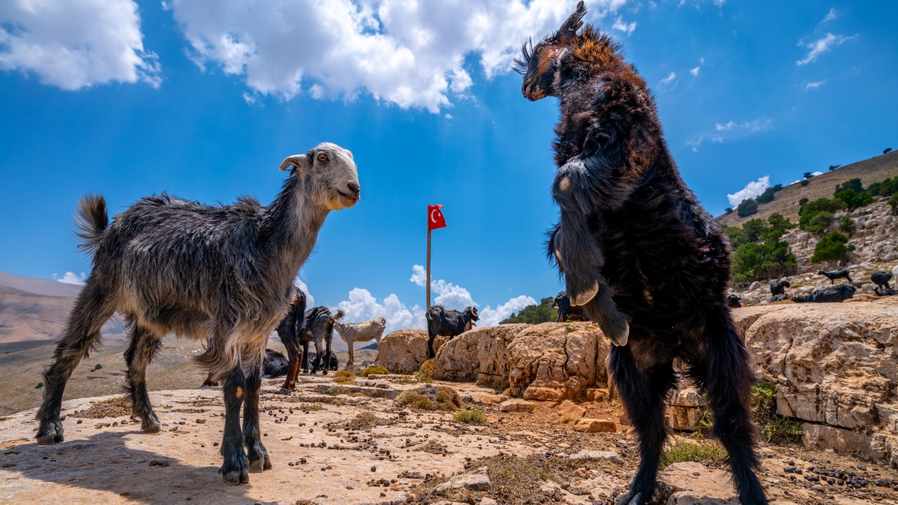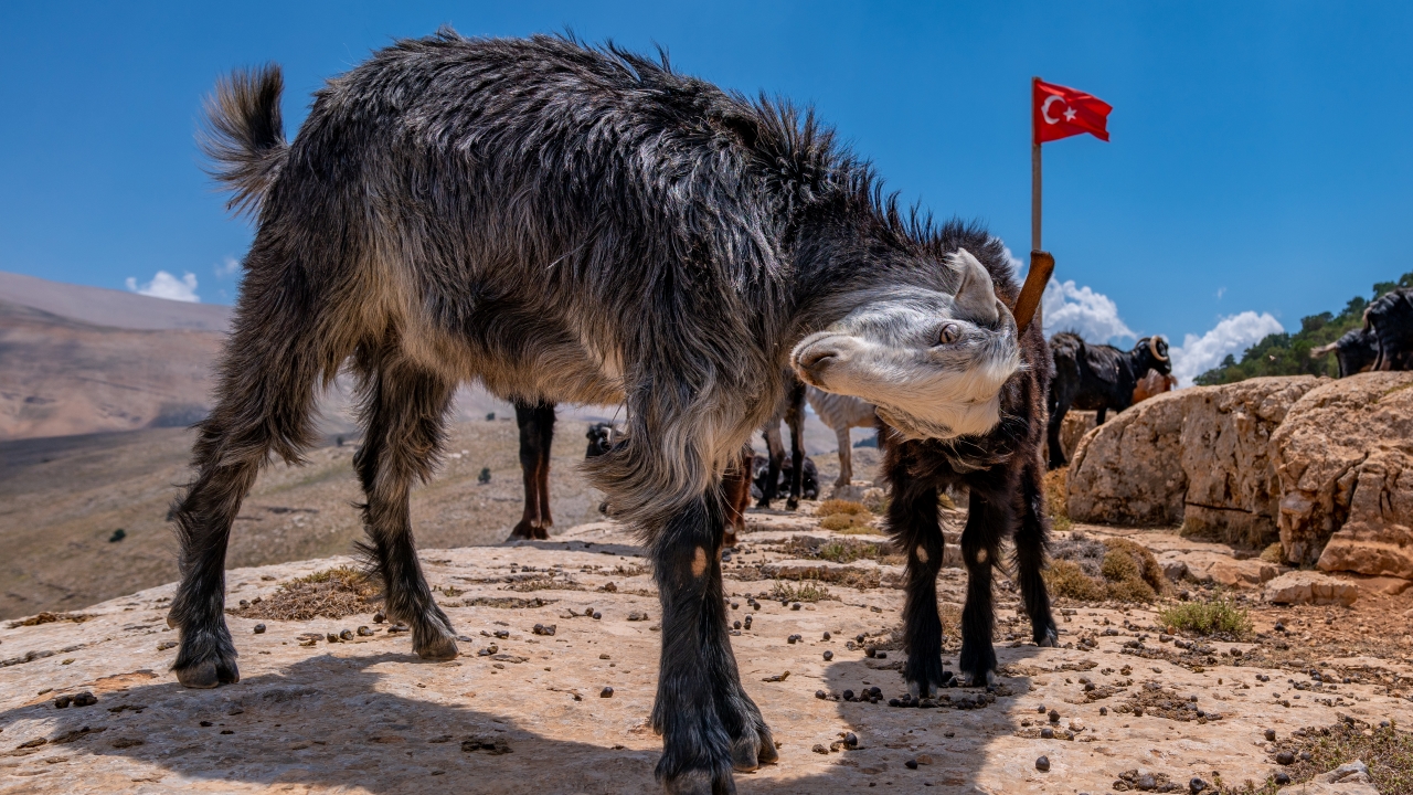 Kayalıklar üzerine kümelenmiş bir grup keçinin Kızlarsivrisi eşliğindeki görüntüleri objektiflere yansırken bir çift keçinin Türk Bayrağı önündeki mücadelesi ilgiyle izlendi.