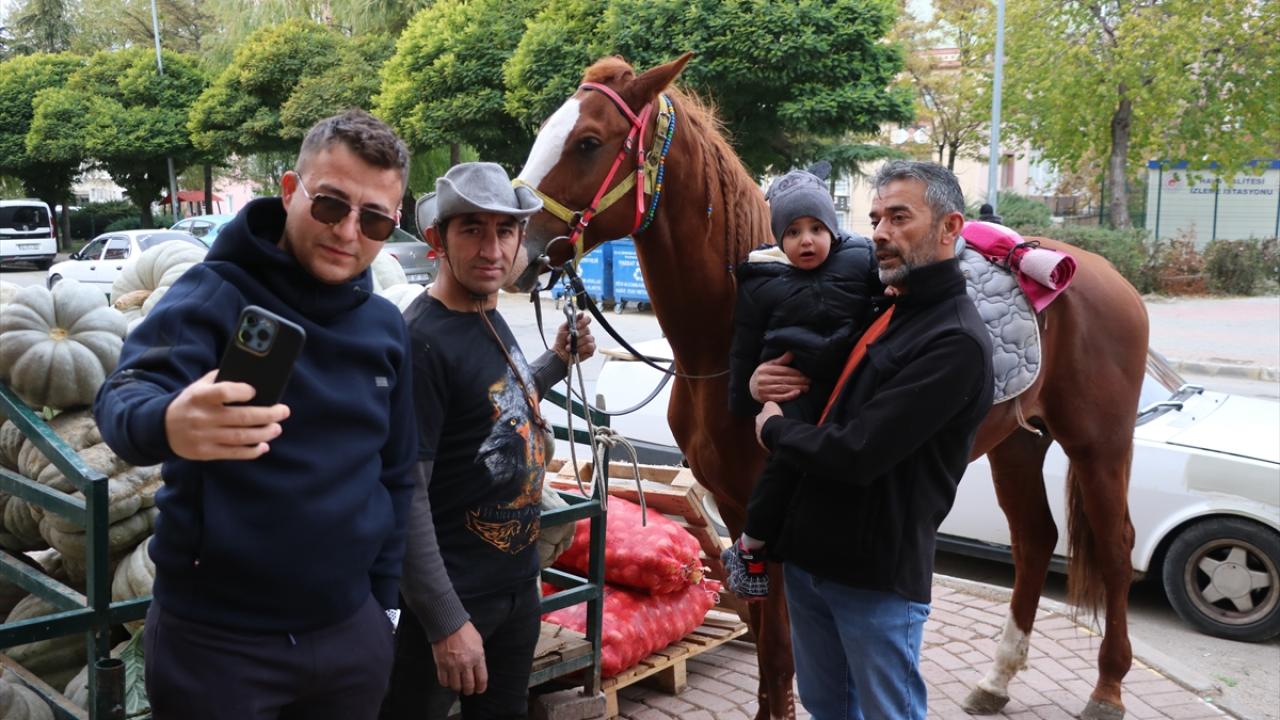 Çömez, hatıra fotoğrafı çektirmek isteyenler ile ata binmek isteyen çocukları da geri çevirmiyor.