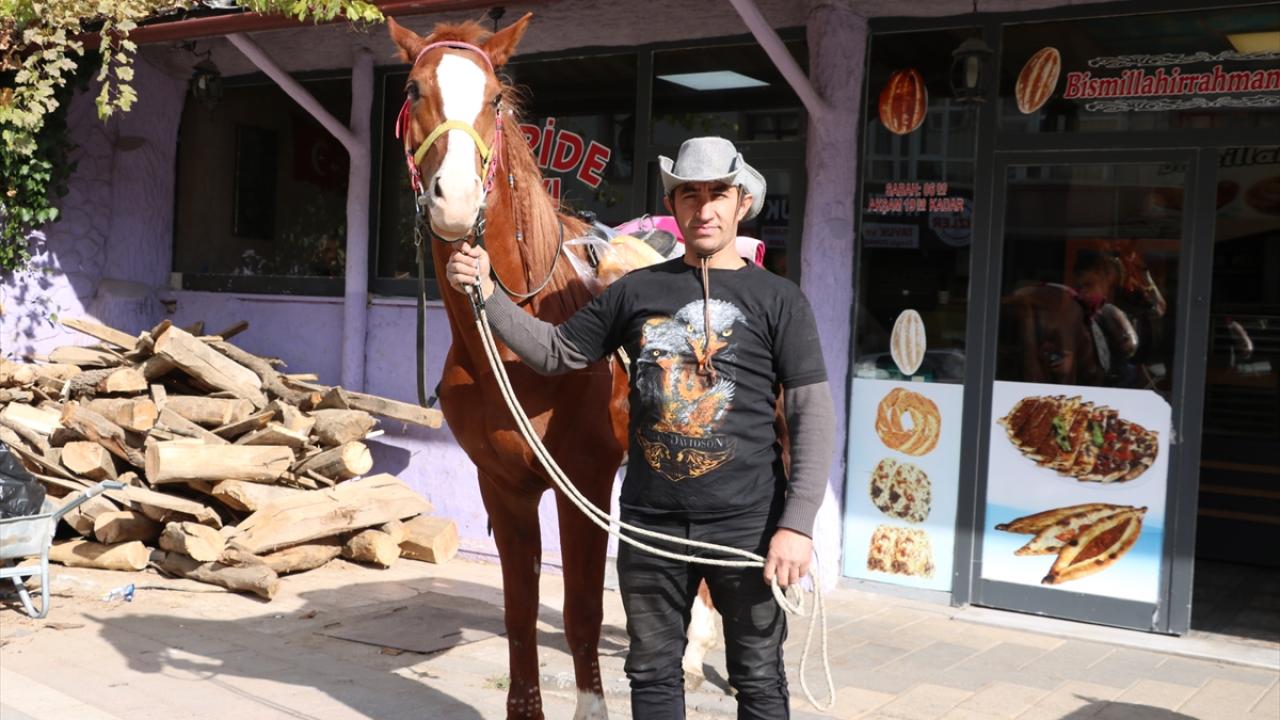 Çocukluk yıllarından itibaren hayalini kurduğu ata 2 yıl önce kavuşan 49 yaşındaki fırıncı Ali Çömez, günlük hayatında ulaşım aracı olarak atını kullanıyor.