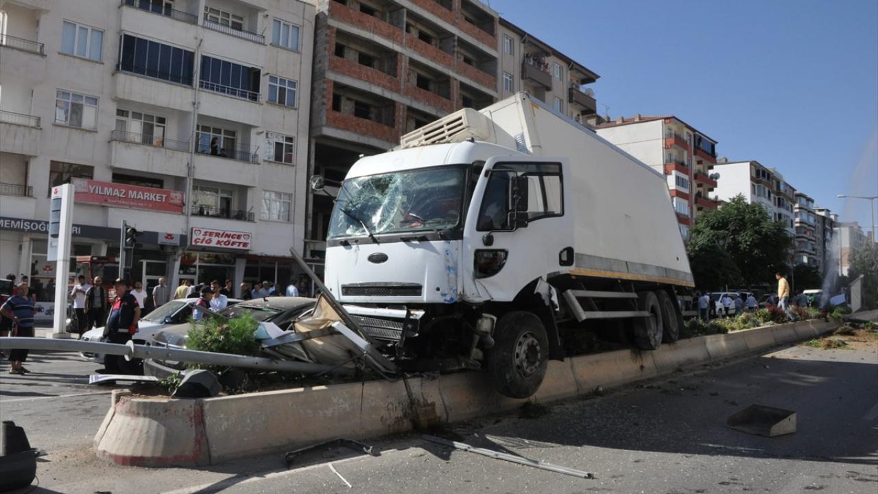 Ayanoğlu Mahallesi Nato Yolu Hastane Kavşağı`nda freni patlayan İ.K. yönetimindeki 51 ADB 088 plakalı kamyon, park halindeki ve trafik ışıklarında bekleyen araçlara çarparak durabildi.