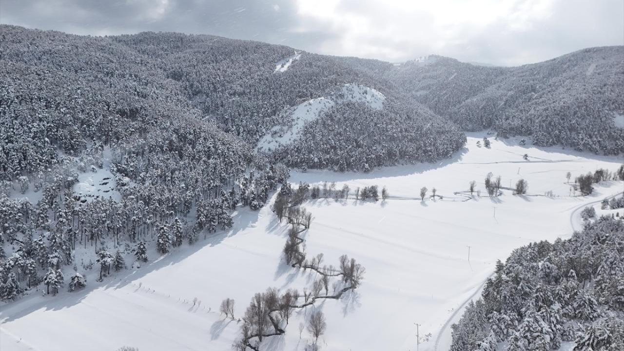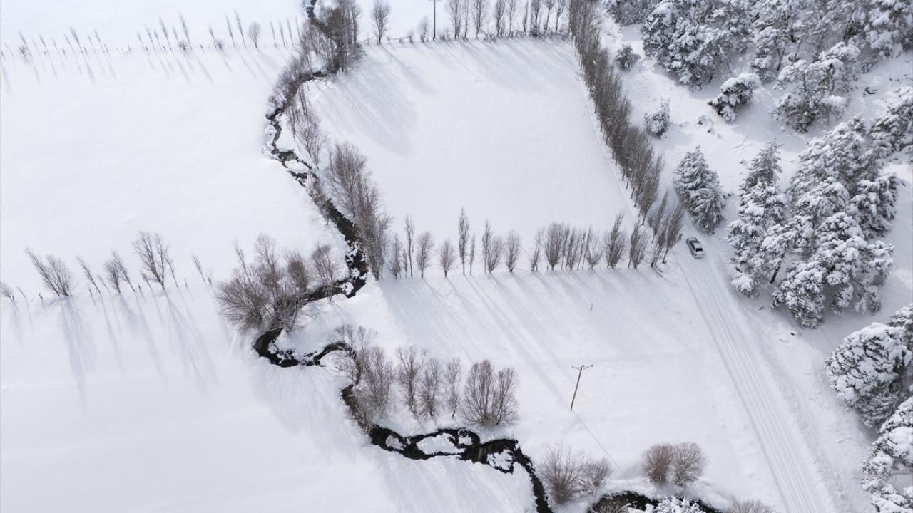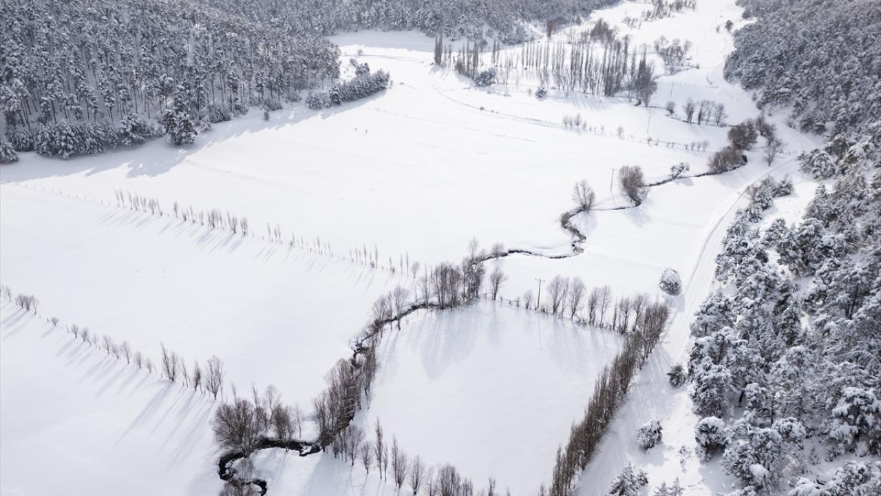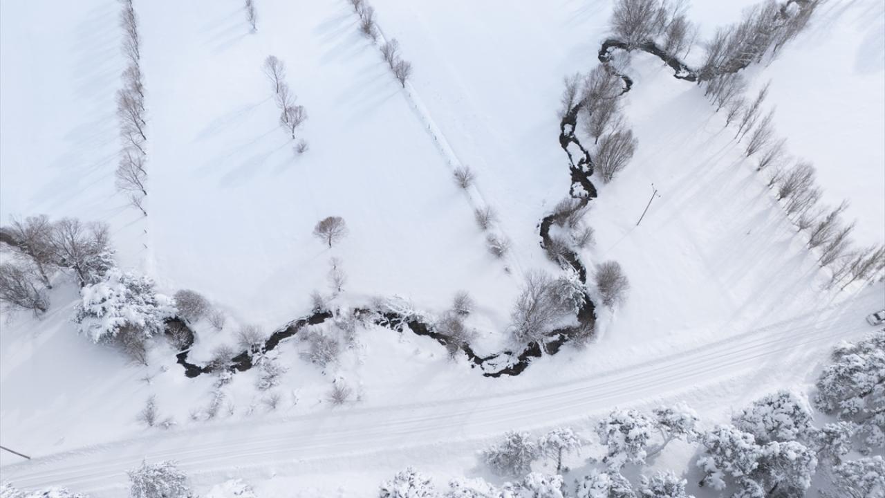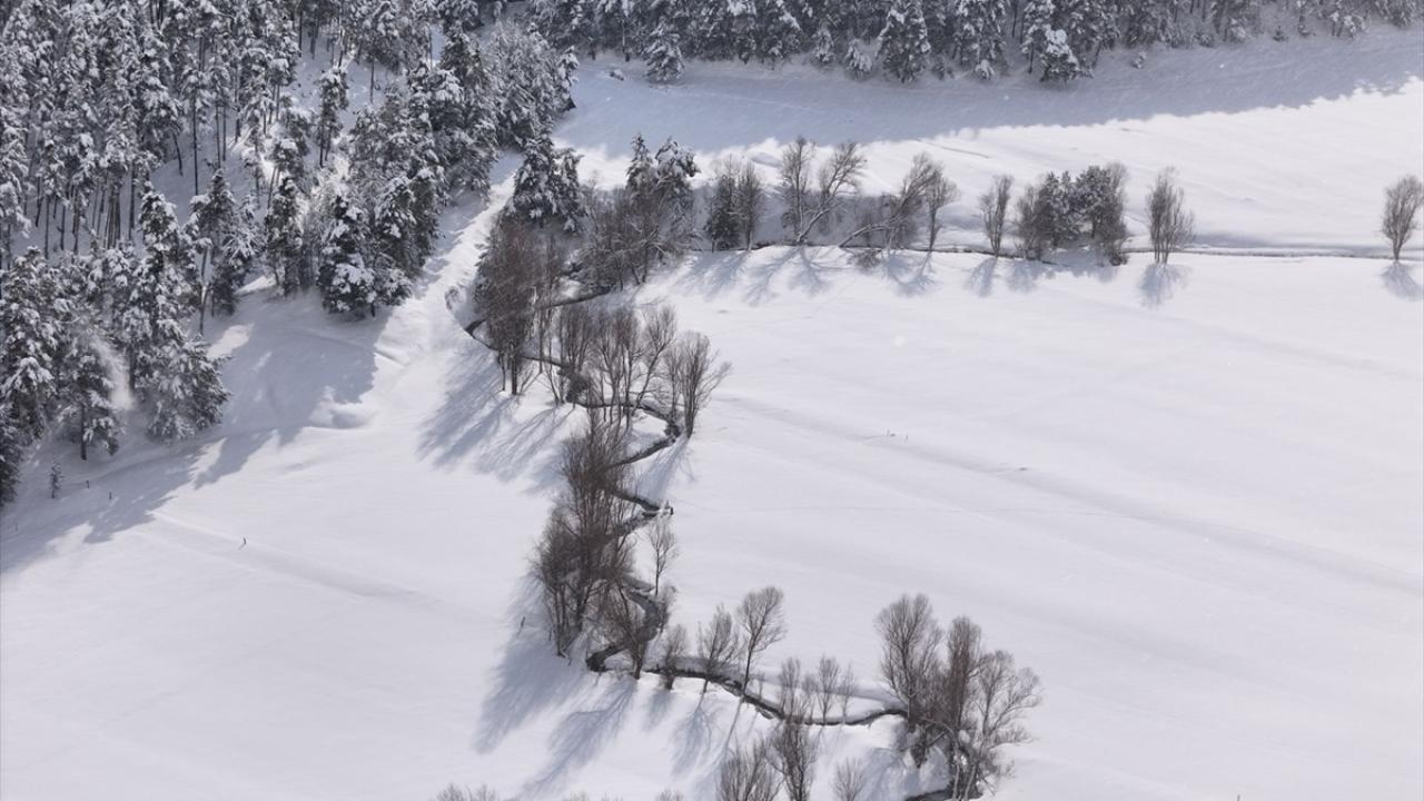 İlçeye bağlı Başçatak ile Yukarıçulhalı köyleri arasında bulunan ormandaki vadiden akan menderesler, kar altındaki görüntüleri görsel şölen sundu.