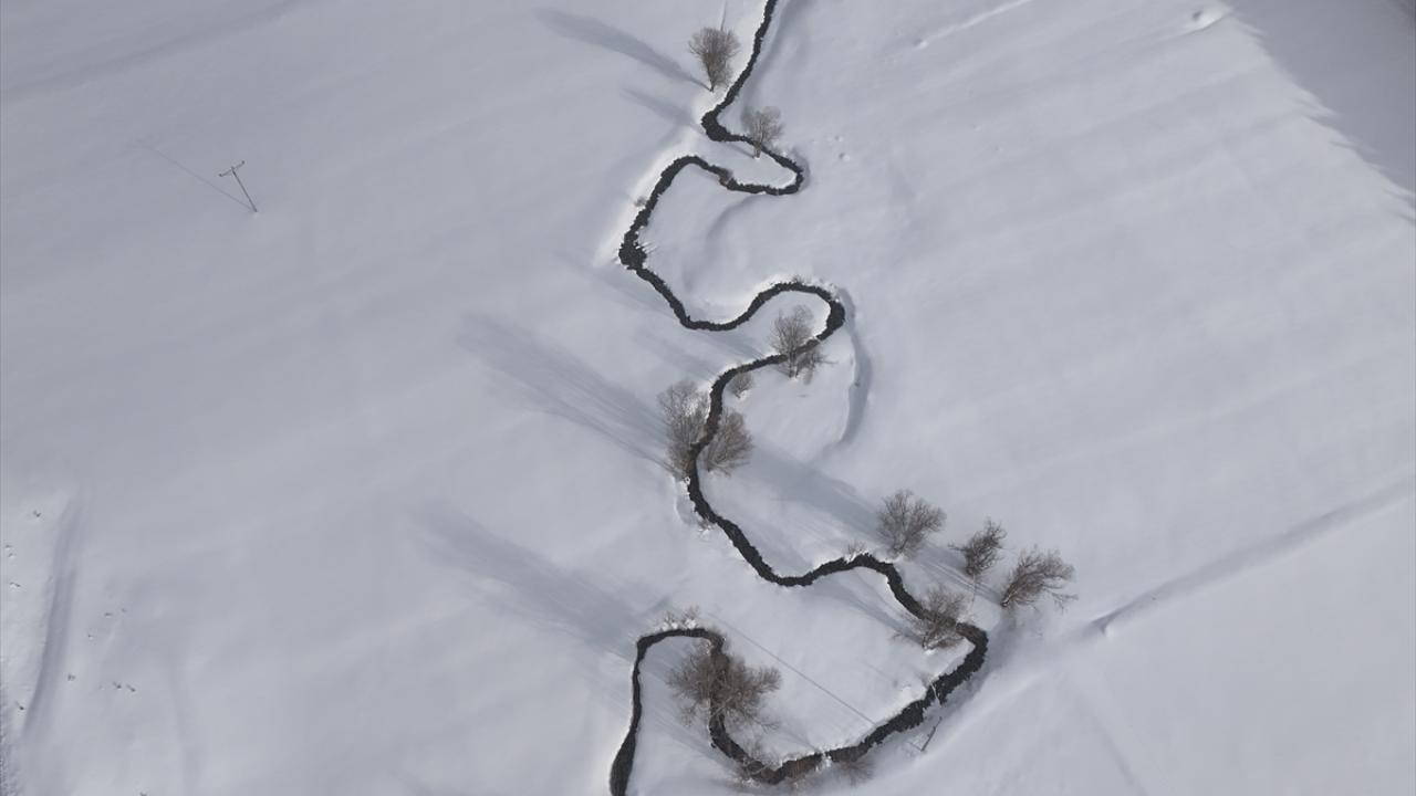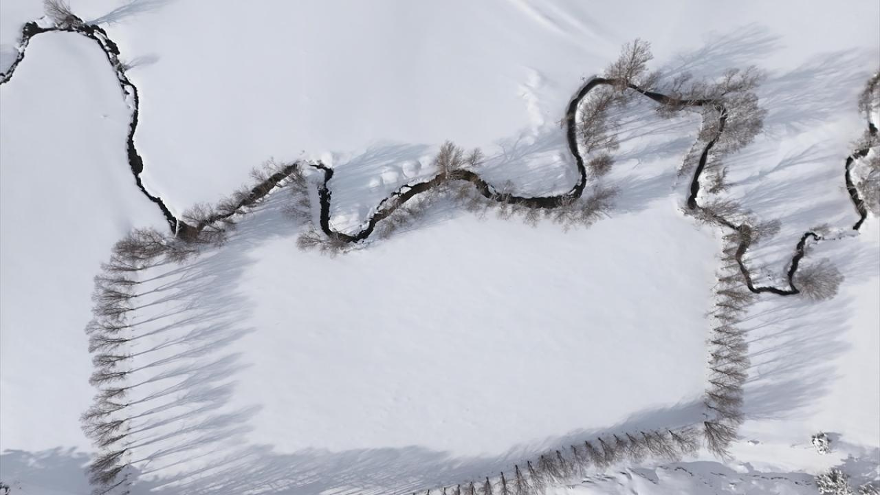 Kar altındaki menderesler dronla kaydedildi.