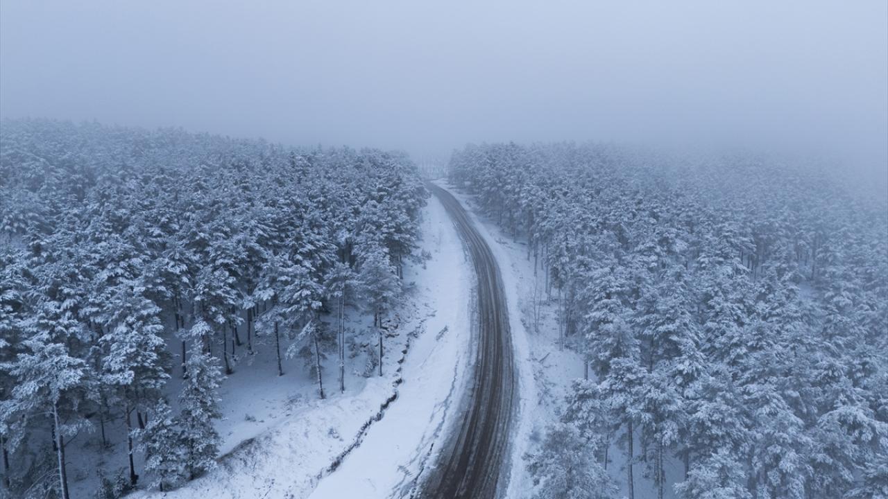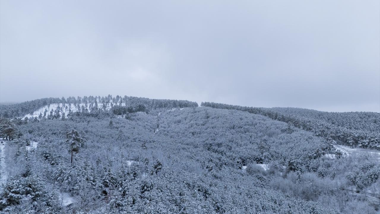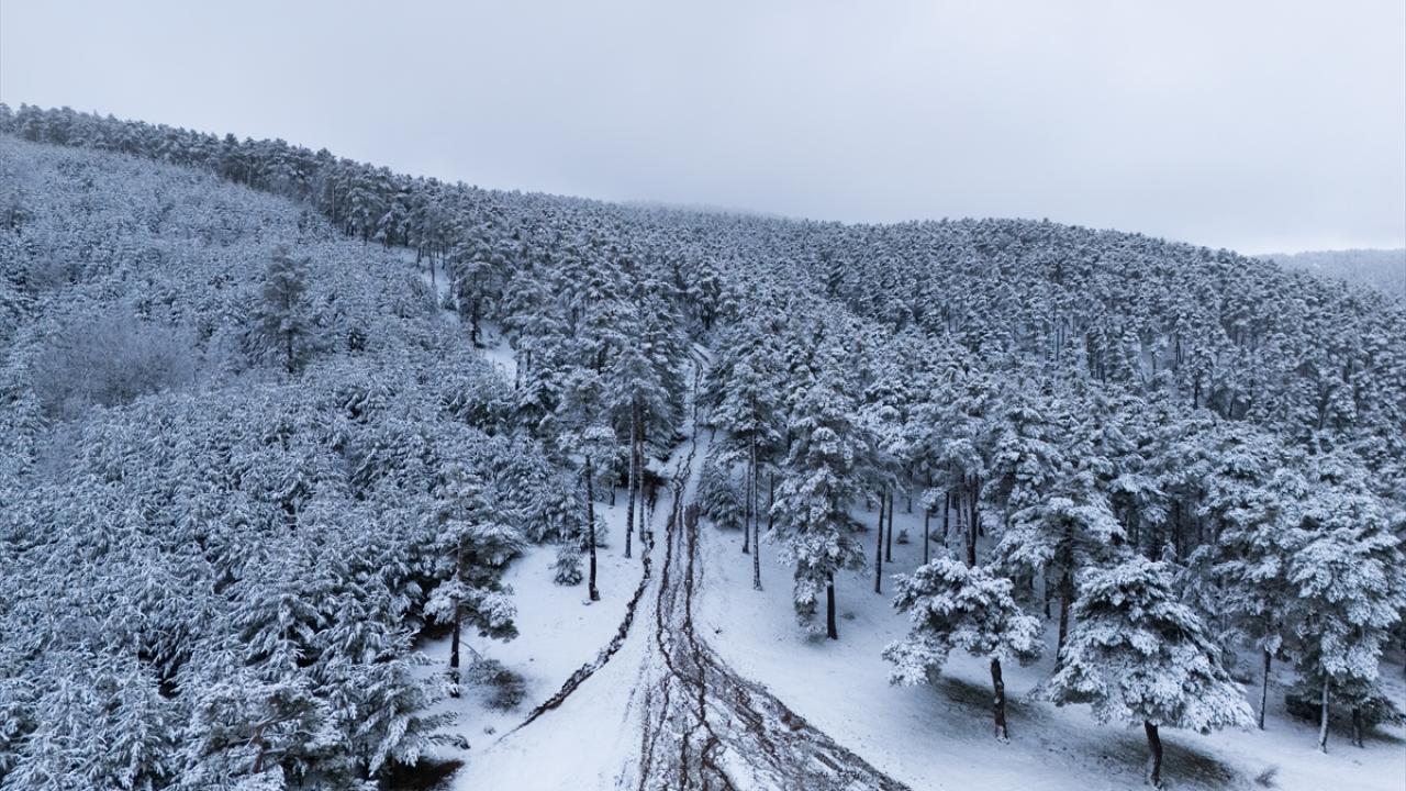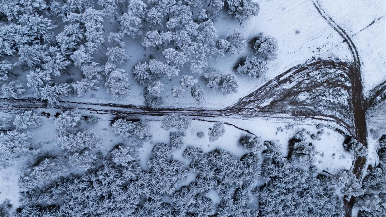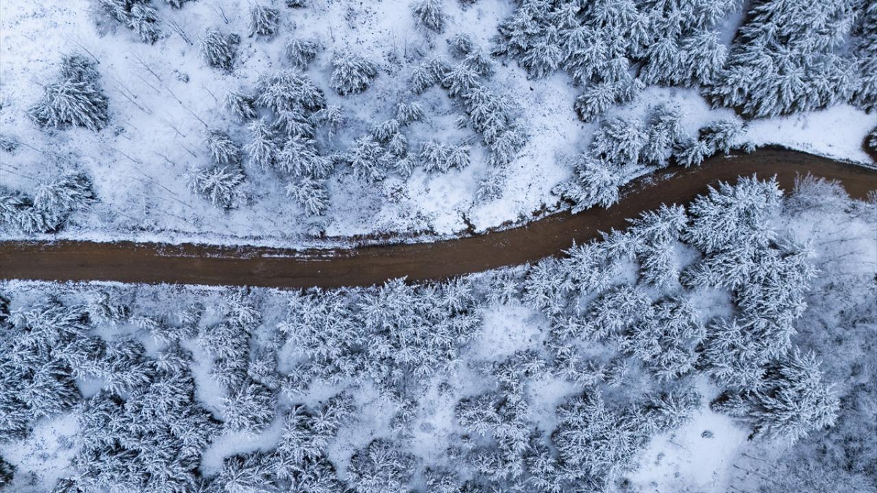 Karın ardından güzel manzaraların oluştuğu ormanlık alanlar dronla görüntülendi.