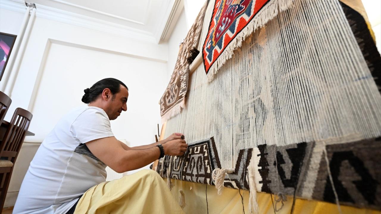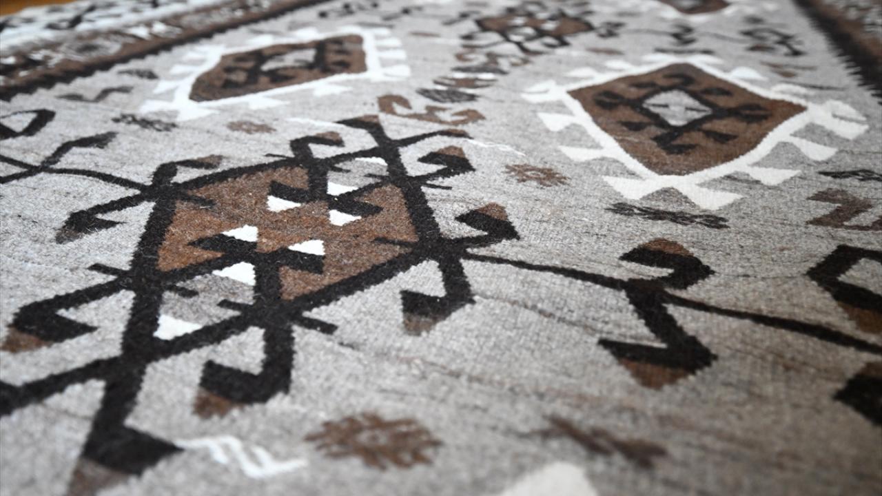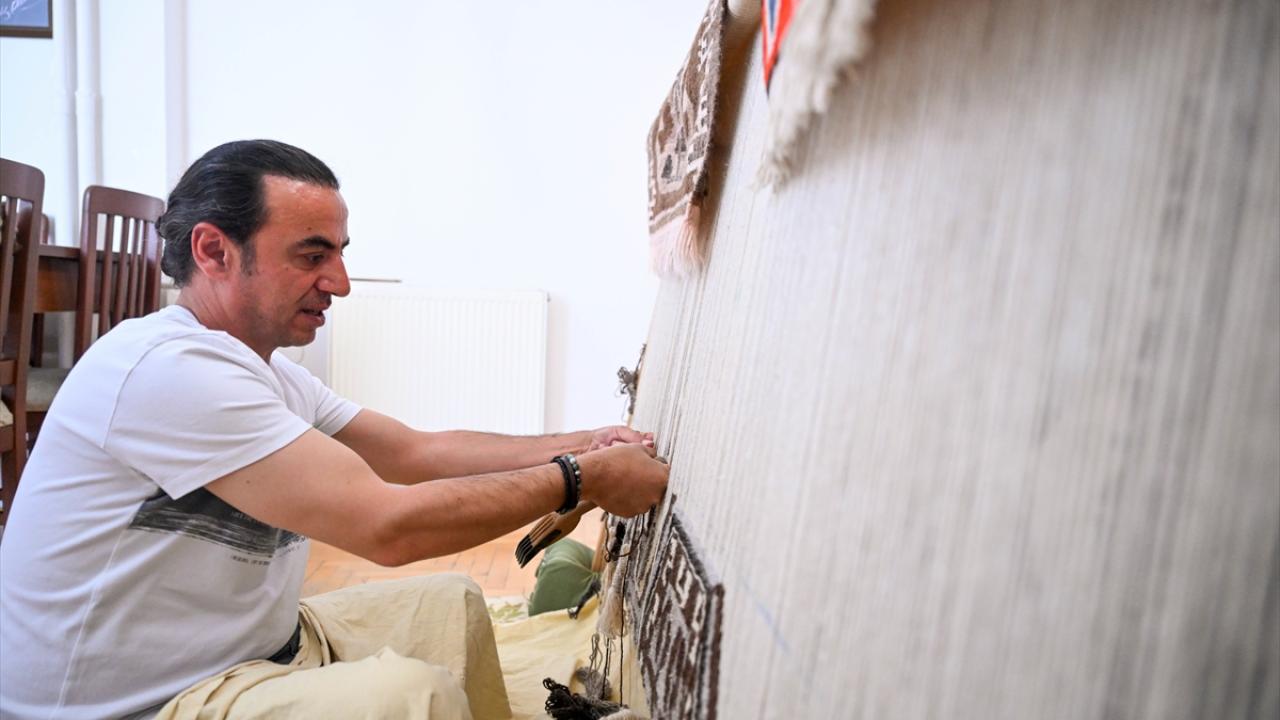 Yüksek lisanslı öğretmen kendi yaptığı tezgahta boyasız kilimler dokuyor