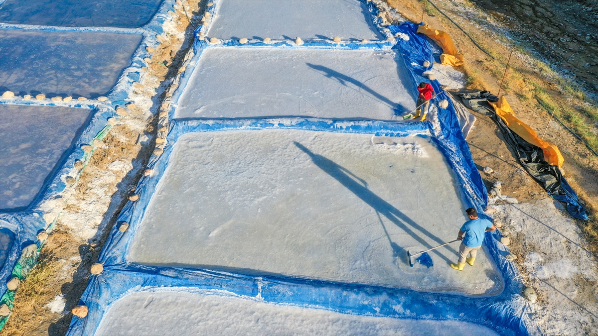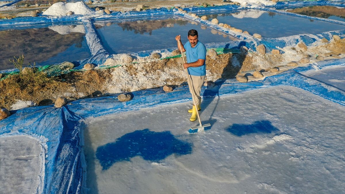 "Tuzlu su kuyularımız var. Oradan suyu çekiyoruz. Büyük havuzlarımızı dolduruyoruz. Biraz dinlendirdikten sonra bu suyu küçük havuzlara aktarıyoruz. Bu havuzlara aldığımız suyu 1 hafta bekletiyoruz. Su buharlaşınca tuz ortaya çıkıyor. Havuzlarda oluşan tuzu topluyor, biriktirme alanlarında kurumaya bırakıyoruz. Daha sonra paketleyip satışa hazır hale getiriyoruz. Satışını yaptığımız tuzdan kalanları stokluyoruz. Depolarda beklettiğimiz tuzu kışın da siparişe göre satıyoruz. Gelen siparişe göre satışımızı gerçekleştiriyoruz."