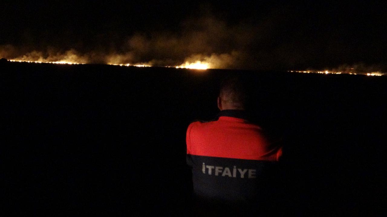 Alanın bataklık olması ve yangının sazlığın orta kısımlarında yoğunlaşması nedeniyle alevleri söndürmekte zorlanan ekipler, tedbir amacıyla alanın etrafında bekliyor.