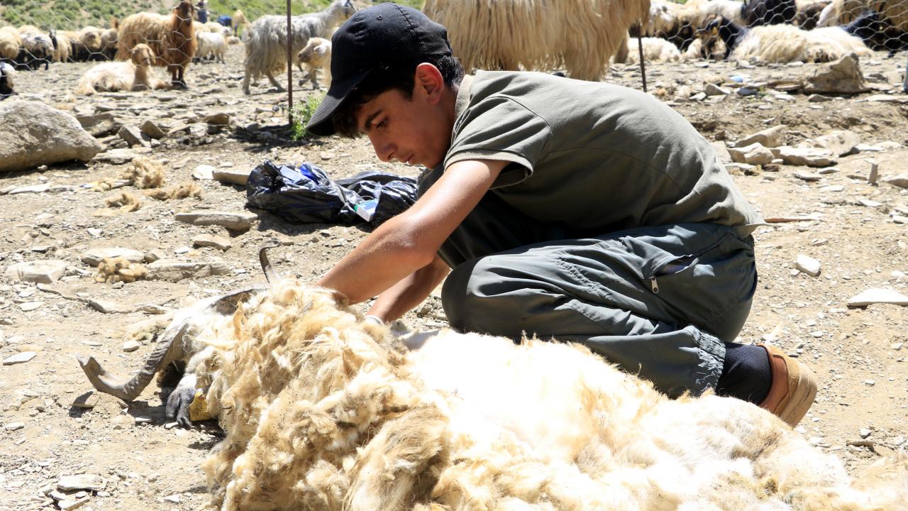 Hakkari’nin Yüksekova ilçesinde havaların ısınmasıyla yaylalara çıkan besiciler, Cilo Dağı eteklerinde hayvanlarının yünlerini kırpıp yazlık bakımlarını yapmaya başladı. Besiciler, koyunlardan elde ettikleri yünü satarak gelir elde ediyor.