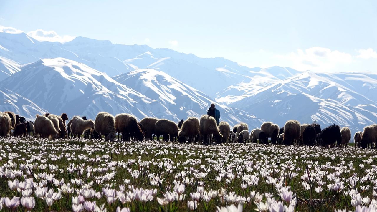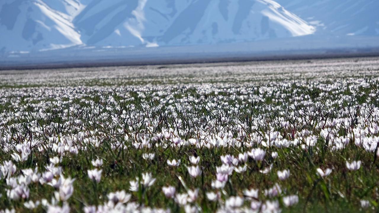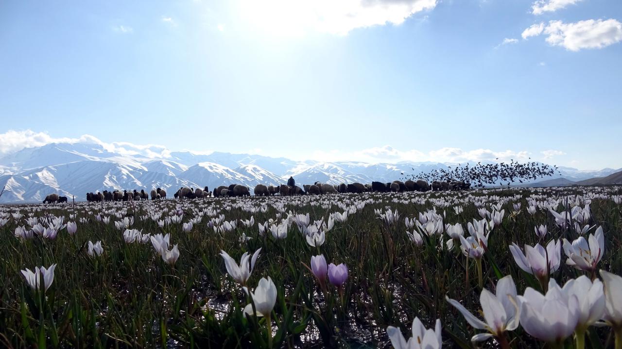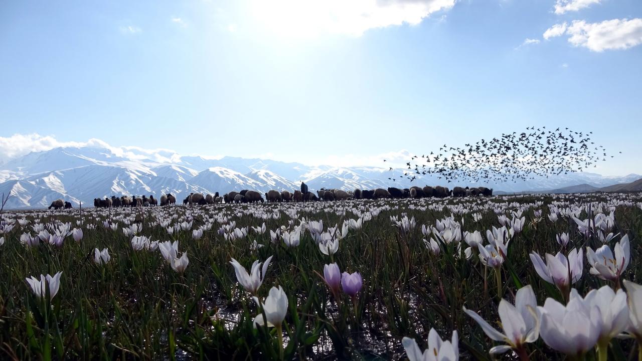 Hakkari'nin Yüksekova ilçesi, baharın gelmesiyle çiçeklerle kaplandı. Açan kardelenler ovada seyrine doyumsuz manzara sunuyor.
