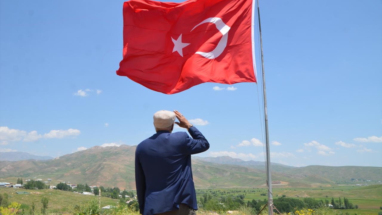 Hakkari'nin Yüksekova ilçesinde yaşayan eski muhtar Seyit Tahir Öztepe, evinin yanındaki tepeye diktiği direkte 39 yıldır Türk bayrağını dalgalandırıyor.