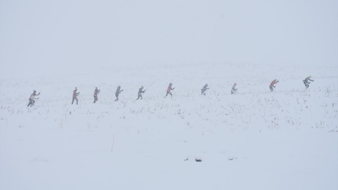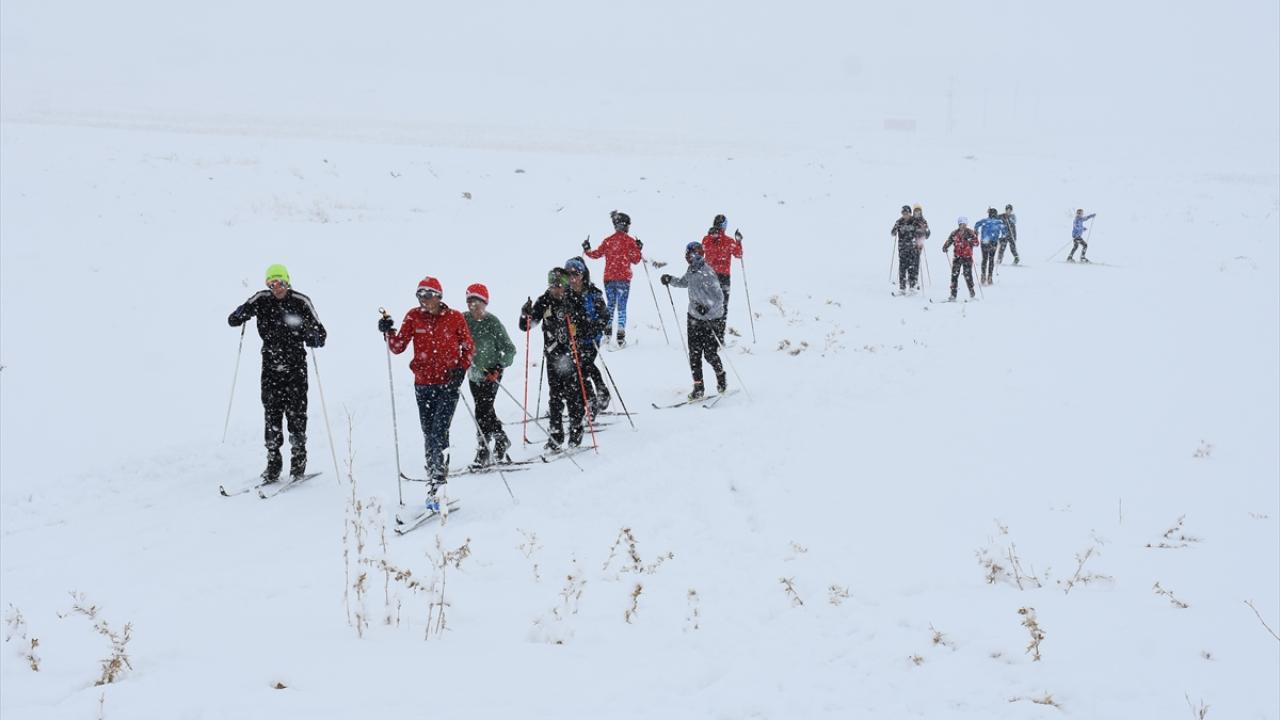 Yaz boyunca karayolu ve yamaçlarda yaptıkları antrenmanlarla güç depolayan yaklaşık 60 sporcu, iki gündür ilçede etkili olan yağışlar sayesinde hazırlıklarını kar üzerinde sürdürdü.
