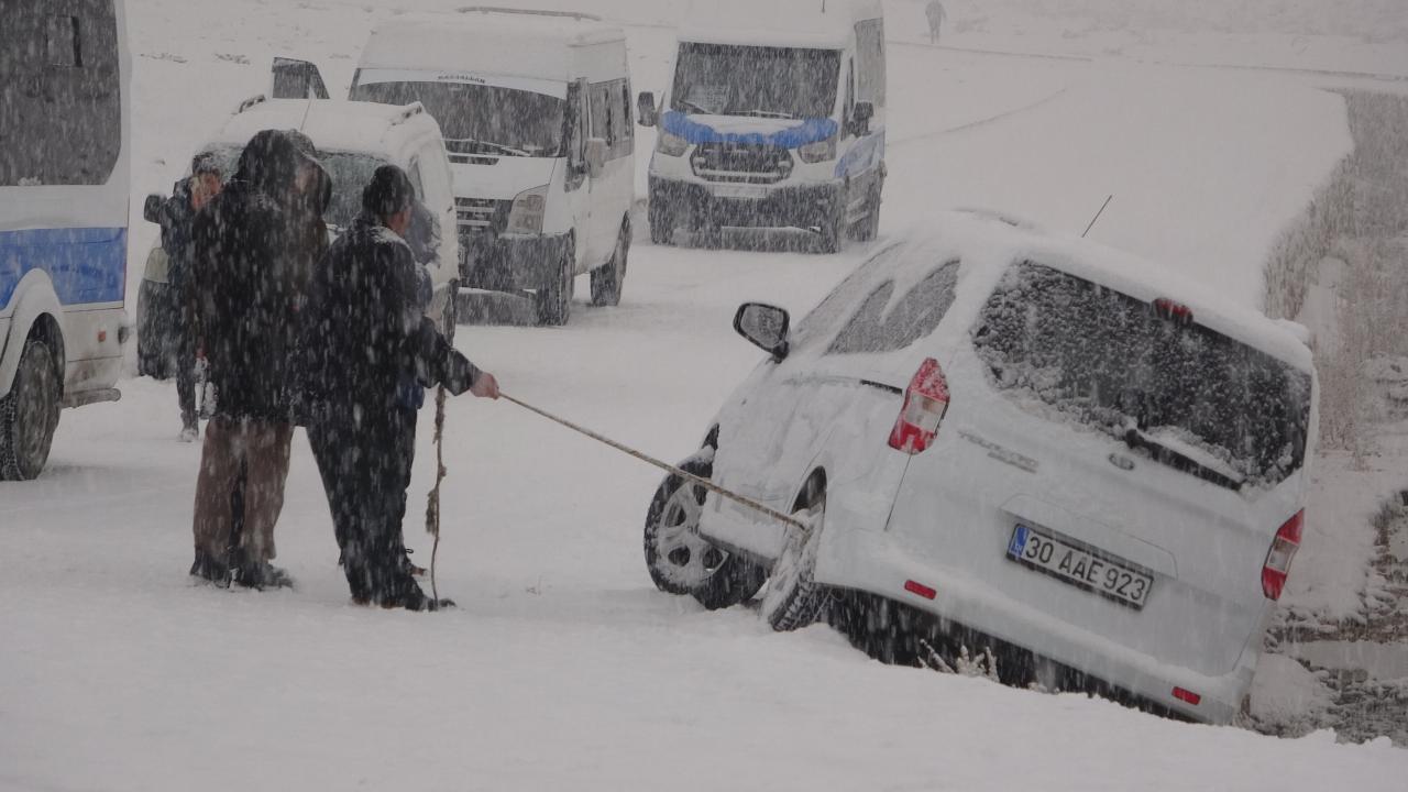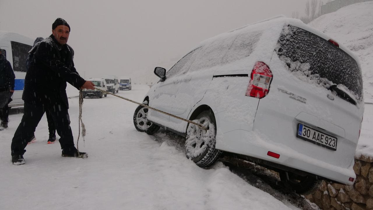 Hakkari’nin Yüksekova ilçesinde yoğun şekilde bastıran kar yağışı hayatı durma noktasına getirirken, buz tutan yolda çok sayıda araç kaza yaptı. Mahsur kalan sürücülerin imdadına polis ekipleri yetişirken, bir vatandaş ise aracının kanala düşmemesi için saatlerce iple tuttu.