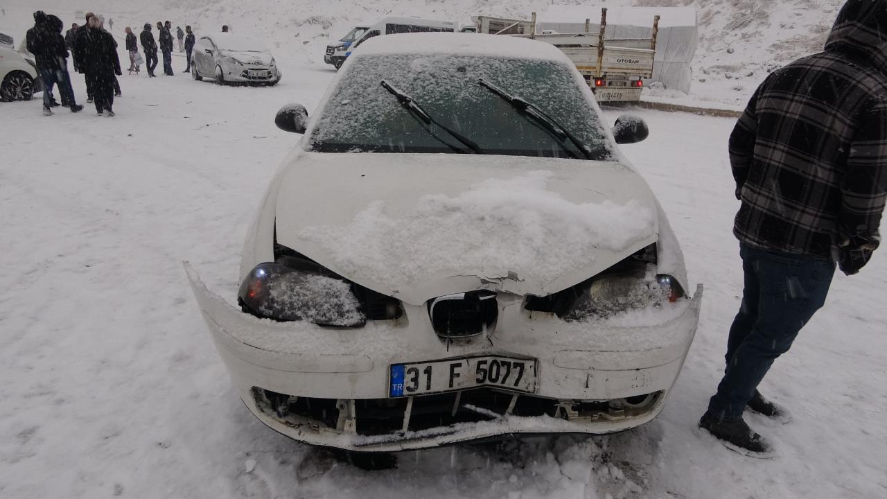 Esentepe Mahallesi Pizok Evleri yolunda yokuş aşağı giden çok sayıda araç, yoğun kar yağışı ve buzlanmadan dolayı kayarak kaza yaptı.