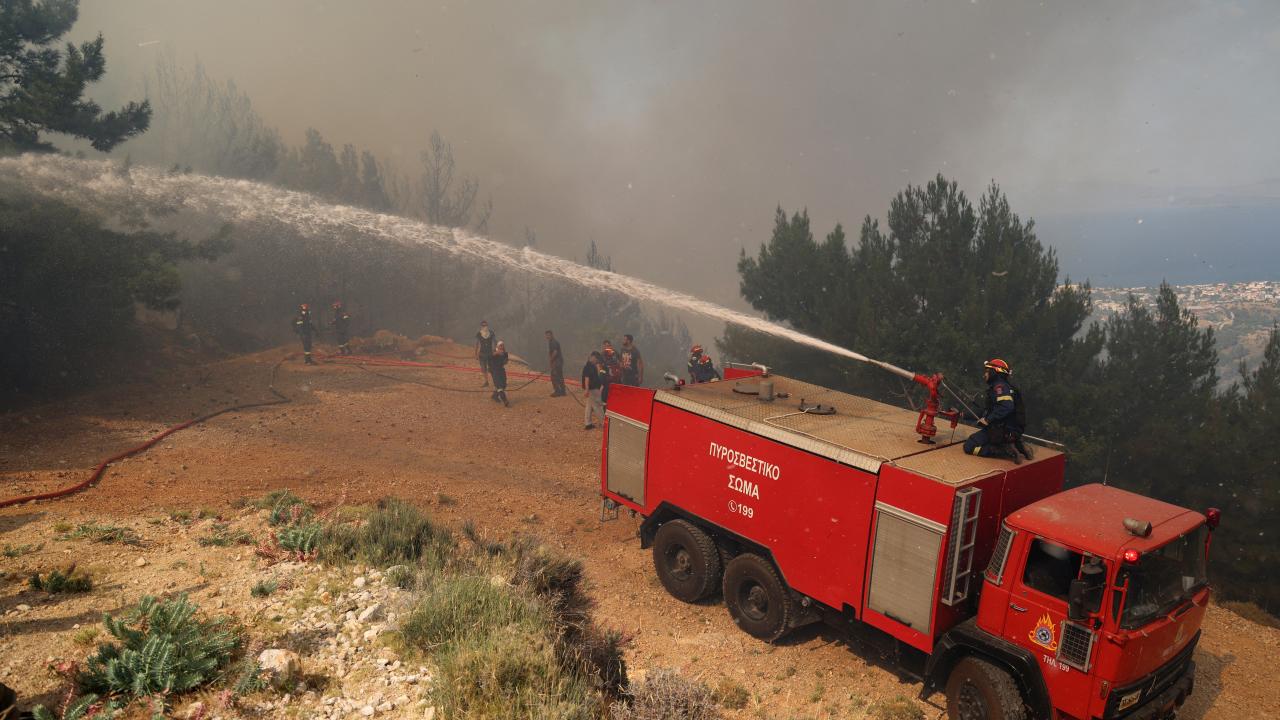 Atina ve Rodos`tan itfaiye ekiplerinin adaya gönderildiği, yangının bir kısmının kontrol altına alındığı öğrenildi.