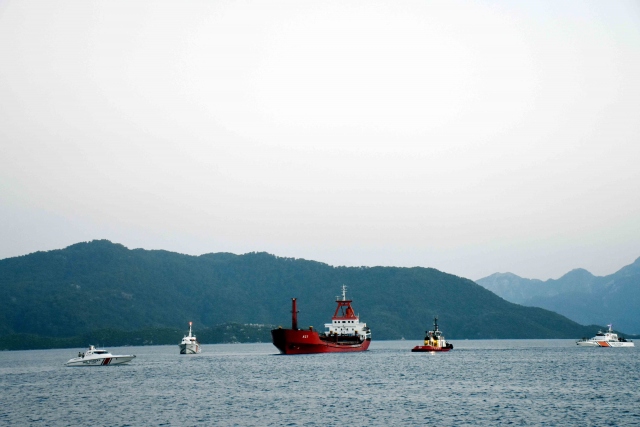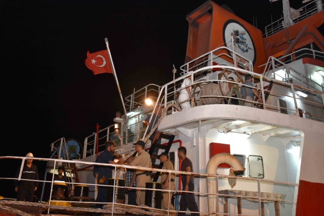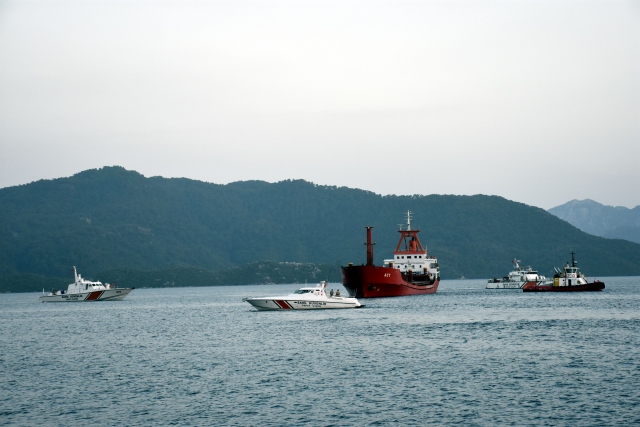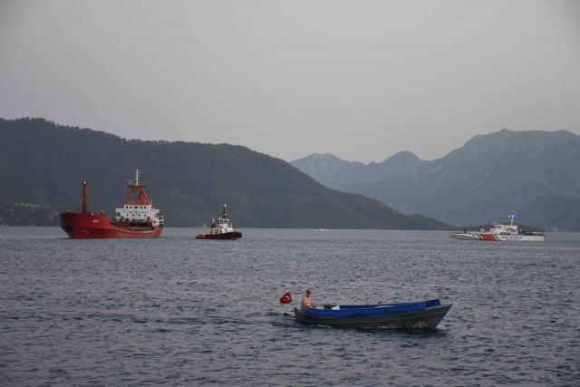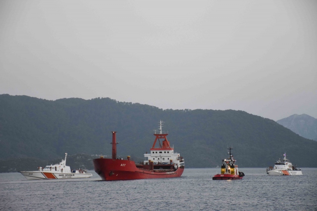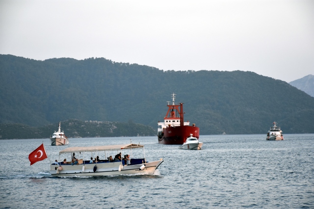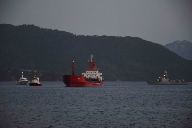 Ege Denizi'nde seyir halindeyken Yunanistan'a bağlı askeri botlardan ateş açılan Türk bandıralı ticari gemi, Sahil Güvenlik Komutanlığına bağlı 3 bot ve Deniz Kuvvetleri Komutanlığından 1 hücumbot eşliğinde Marmaris Limanı'na yanaştı.