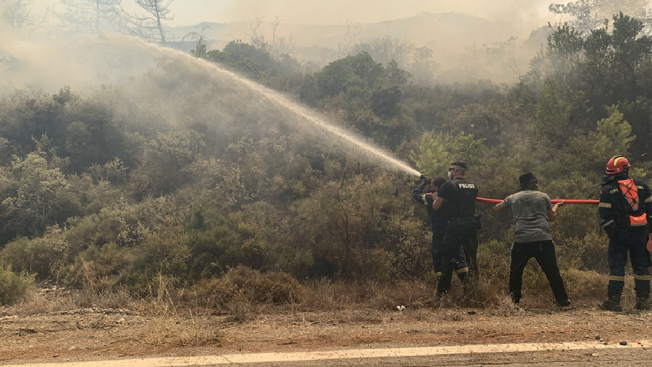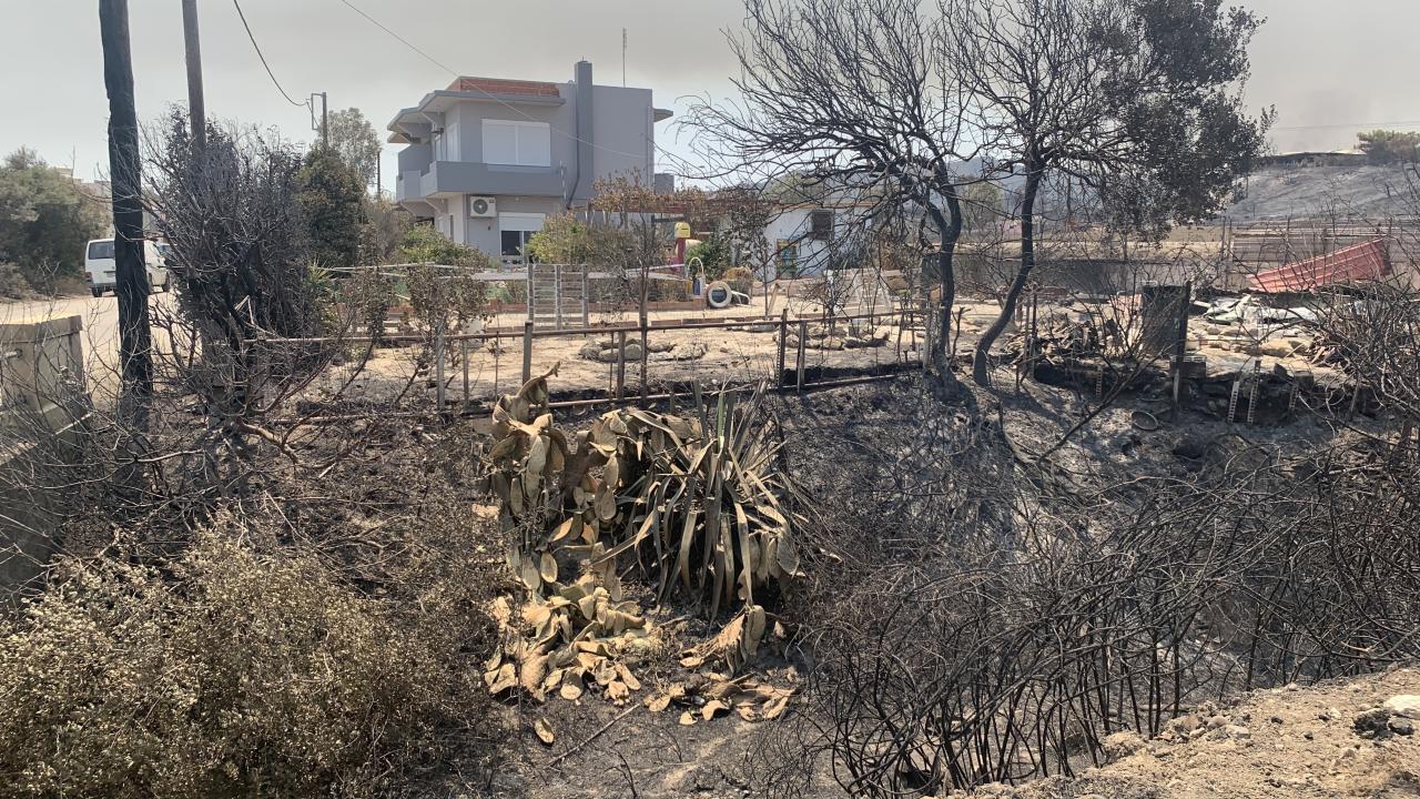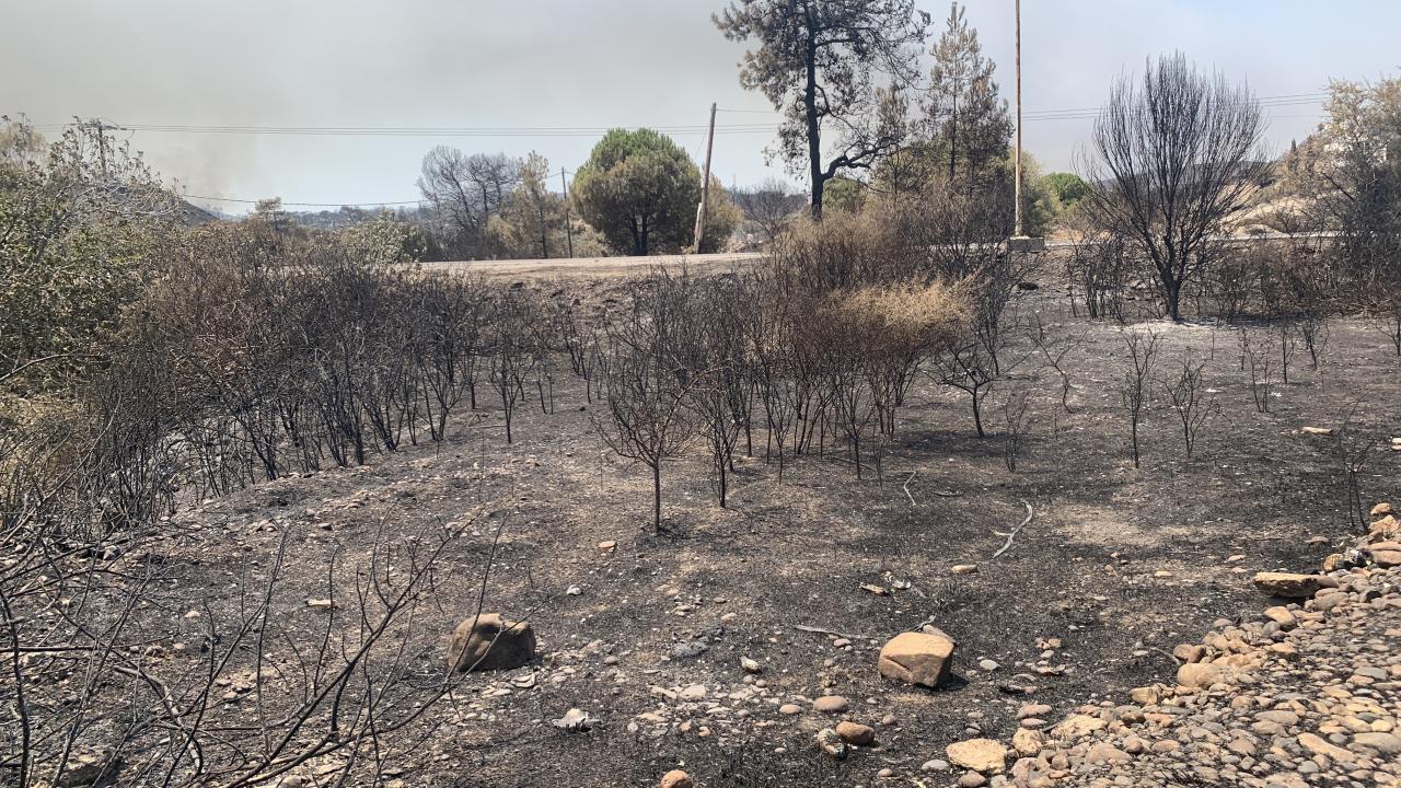 Apraos ve Kalamaki bölgelerinde bazı ev ve işletmeler yangından zarar gördü.