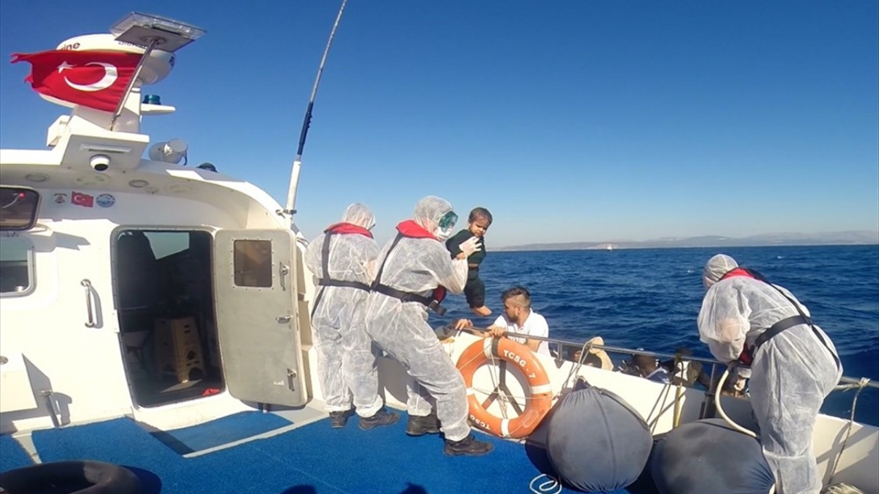 Balıkesir'in Ayvalık ilçesi açıklarında, Yunan sahil güvenlik unsurlarınca Türk kara sularına dönmeye zorlanan lastik bottaki 60 sığınmacı kurtarıldı.