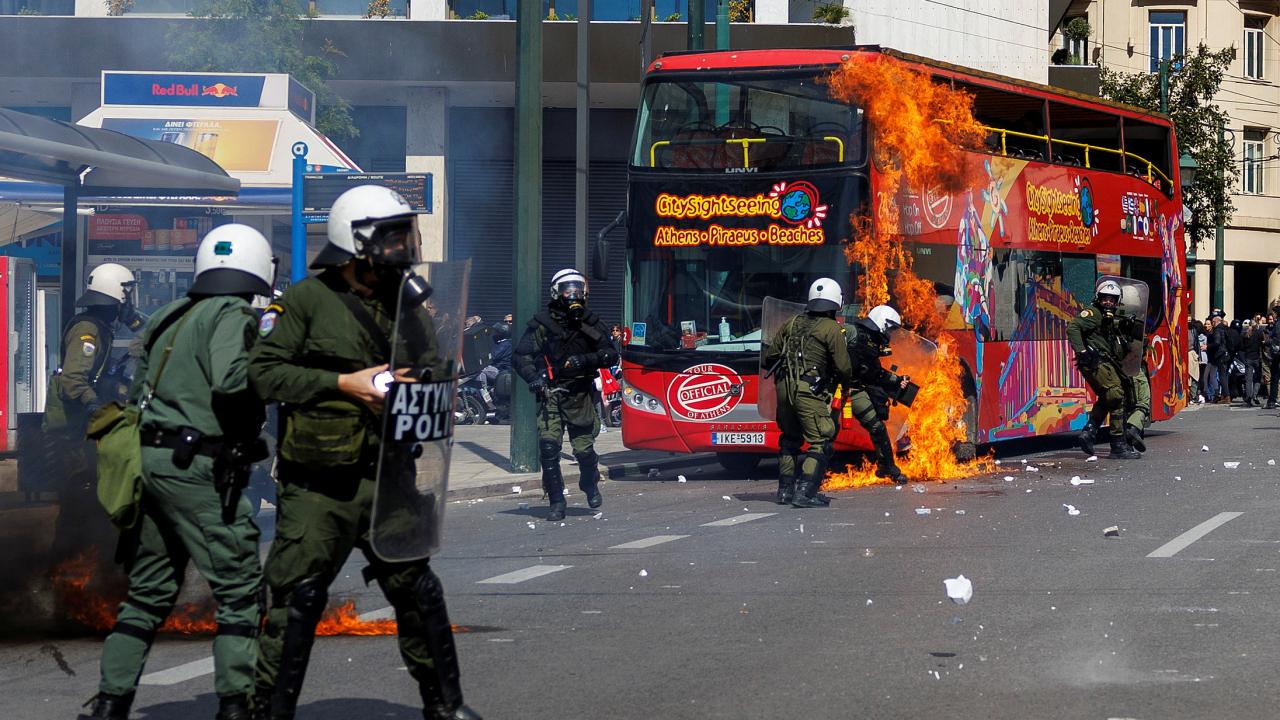 Öte yandan Larisa`nın 26 kilometre uzağındaki Tempi bölgesinde salı gecesi meydana gelen ve 57 kişinin ölümüyle sonuçlanan tren kazasının ardından, demir yolları çalışanlarının, alt yapı ve güvenlik tedbirlerindeki eksikliklere dikkati çekmek için perşembe başlattığı grev de sürdü.