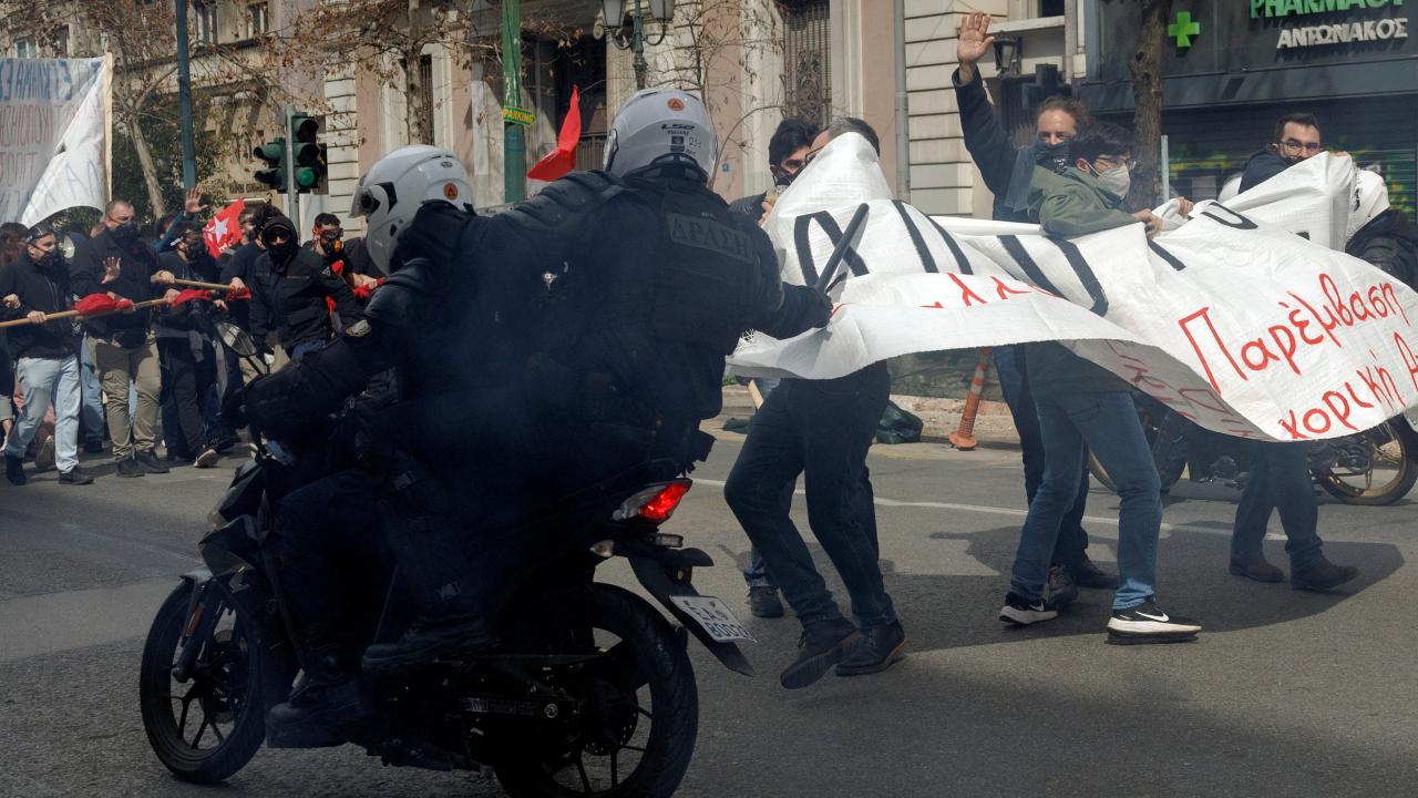 Eylem sırasında bir grup gösterici ile polis arasında gerginlik yaşandı.