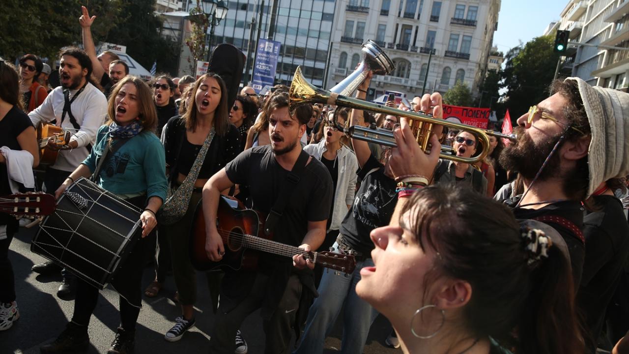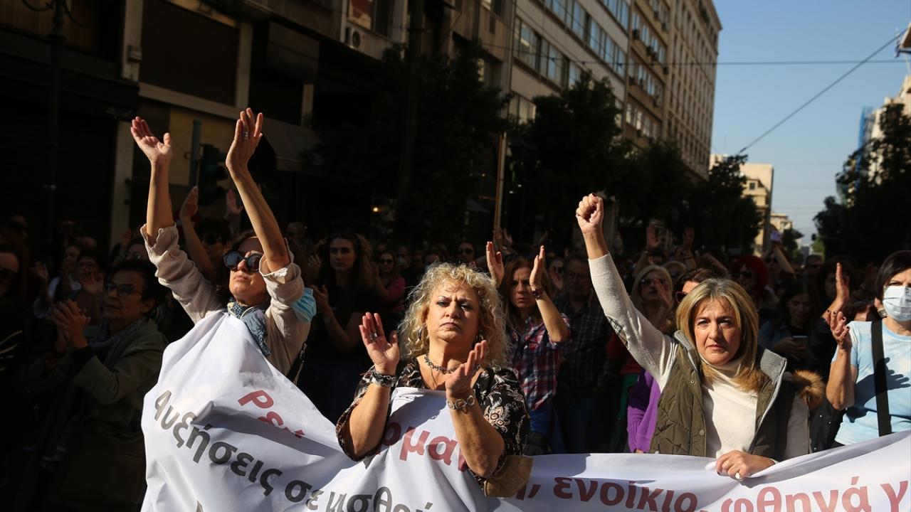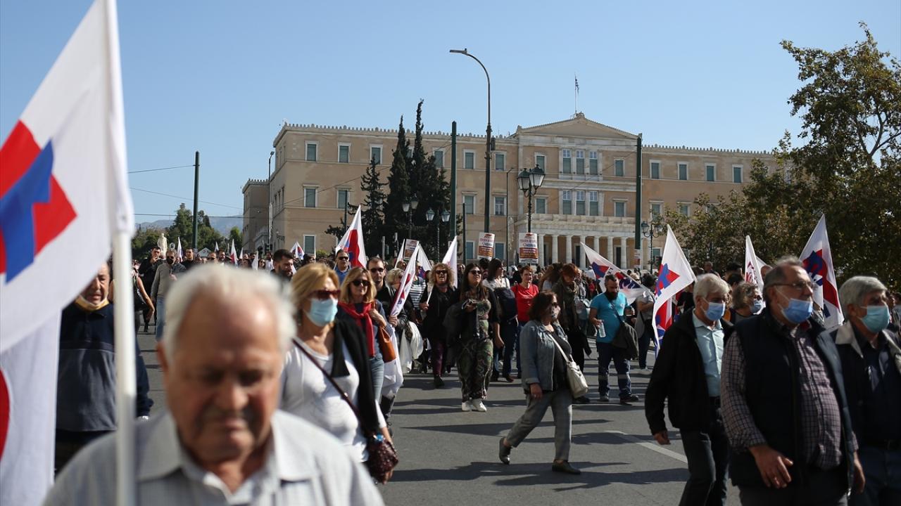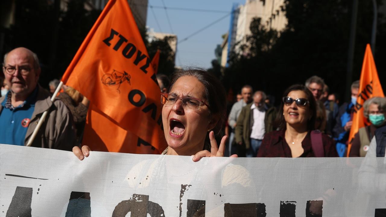 Grev kapsamında Atina merkezinde protesto yürüyüşü gerçekleştirildi. Parlamento binasına doğru yürüyen binlerce eylemci, fiyat artışlarının durdurulmasını ve maaşların artırılmasını istedi.