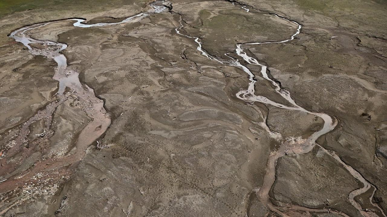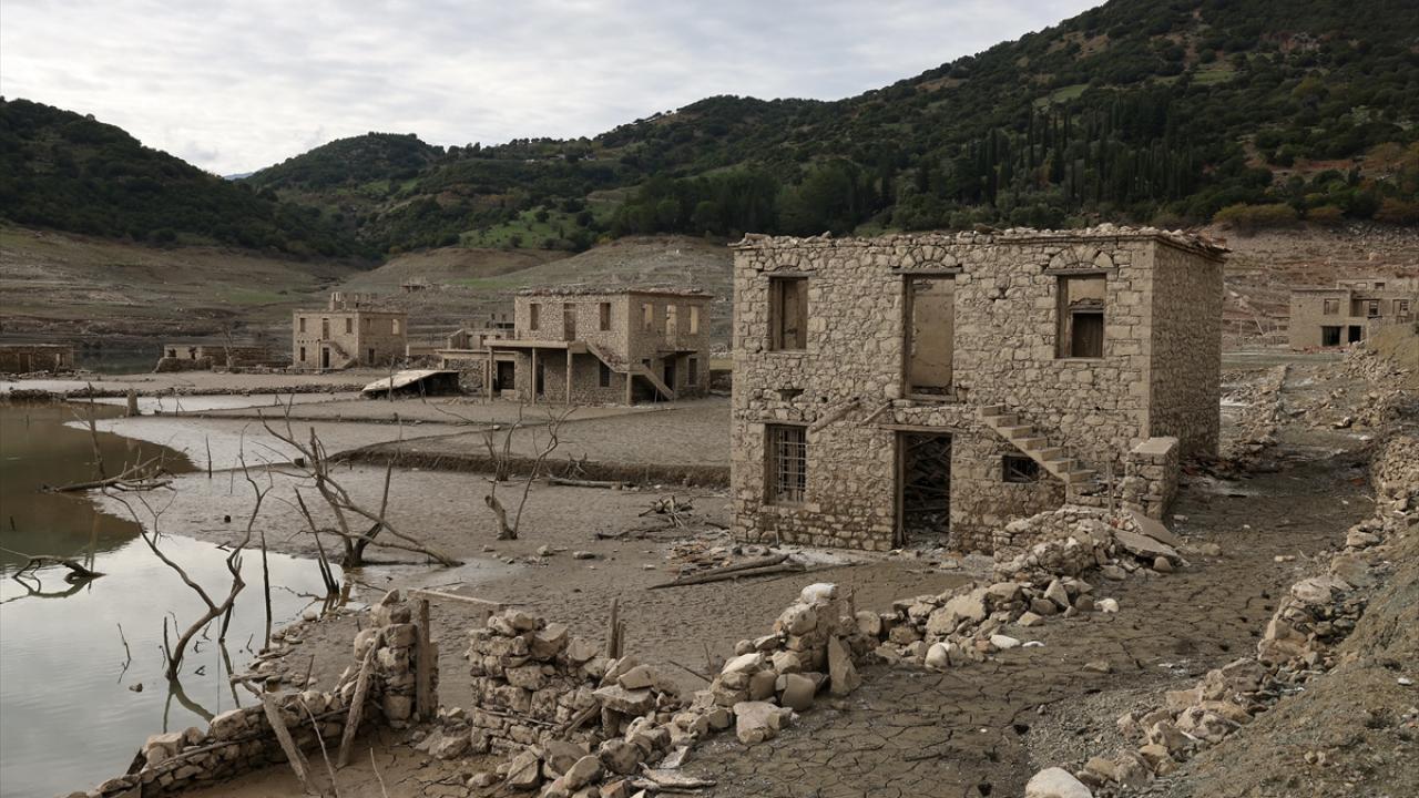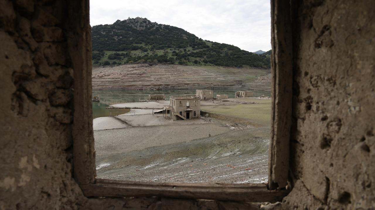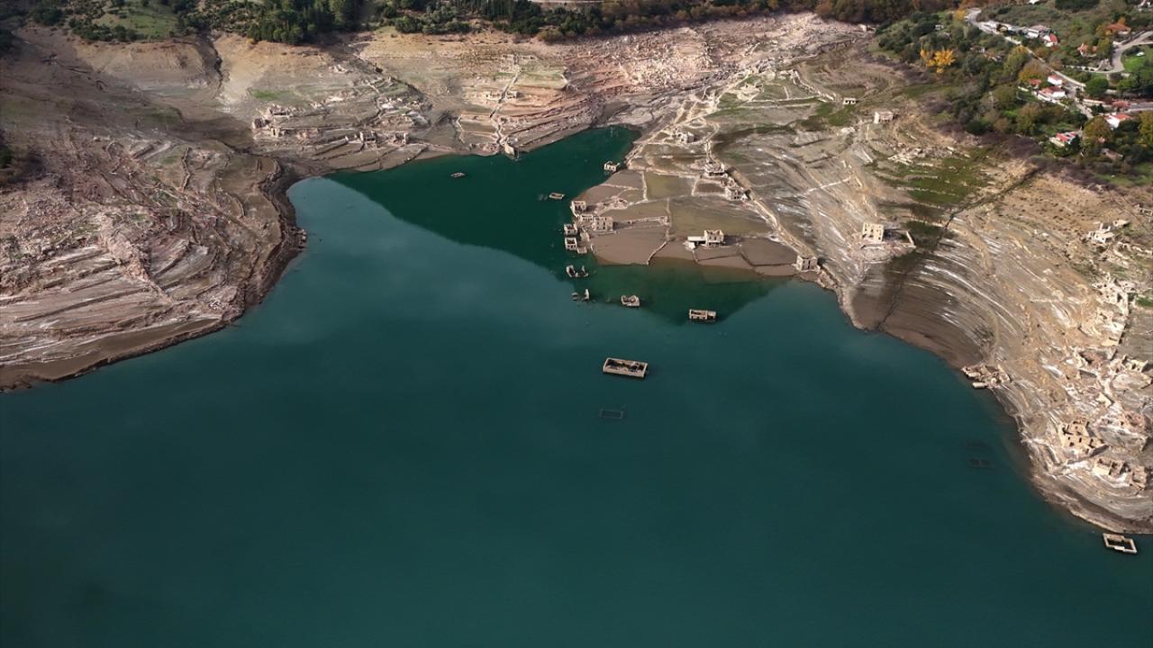 Suyu azalan gölde, eskiden su altında kalan köyün büyük bölümü yeniden gün yüzüne çıktı