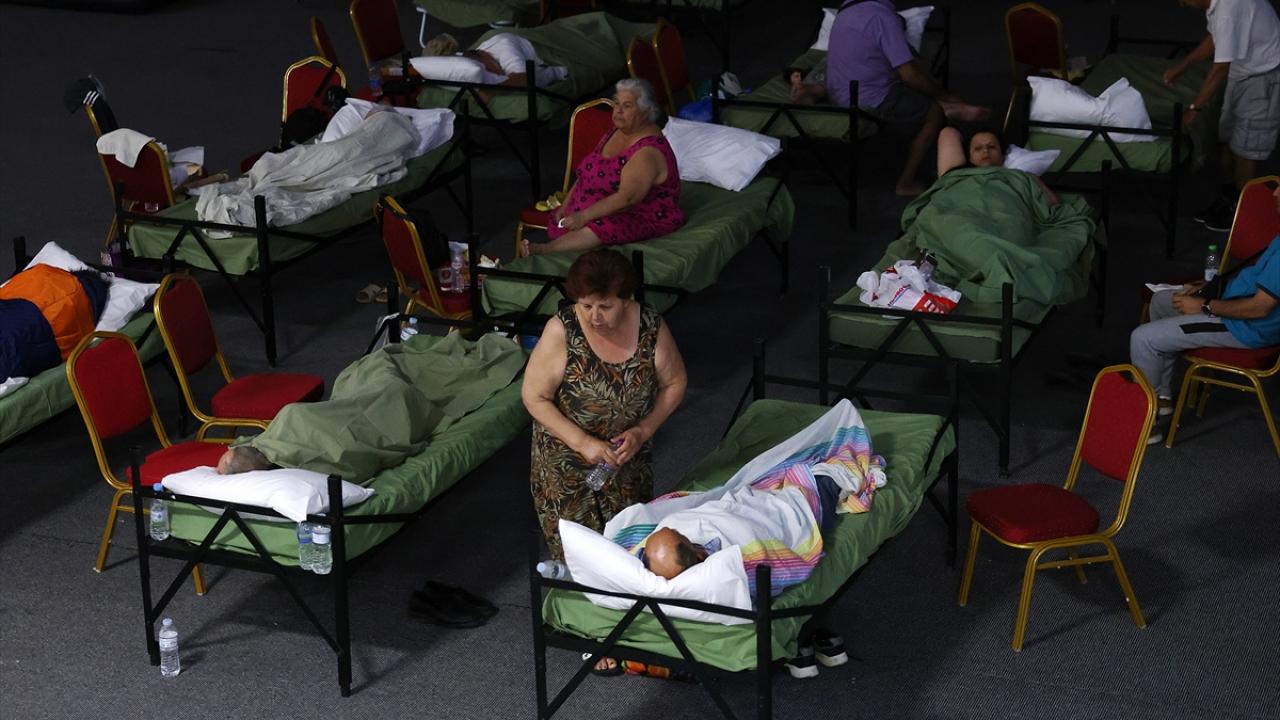 Yunanistan'da devam eden orman yangınlarının bir mühimmat deposuna sıçramasının ardından oluşan patlamalar sebebiyle tahliye edilen bölge sakinleri, geçici olarak Volos kentinde bir belediye binasına alındı.