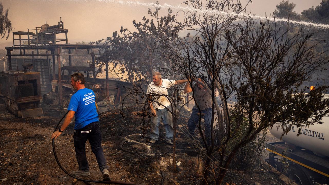 Yunanistan’ın başkenti Atina yakınlarındaki Kuvara bölgesinde ormanlık alanda çıkan yangın, yerleşim birimlerini tehdit etmeye başladı. İtfaiye ekipleri, Magoula bölgesinde bulunan Pournari'de yangın söndürme çalışmaları yürüttü.
