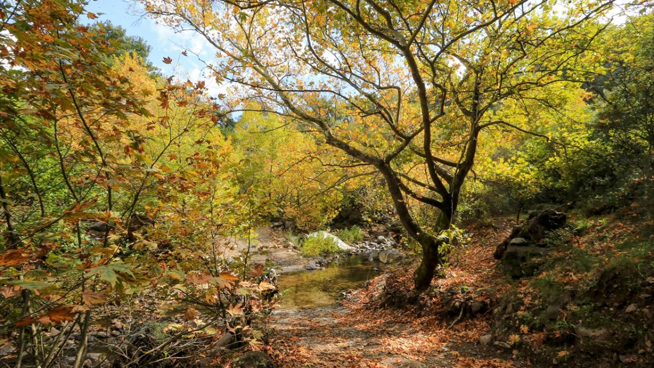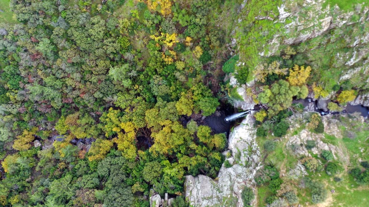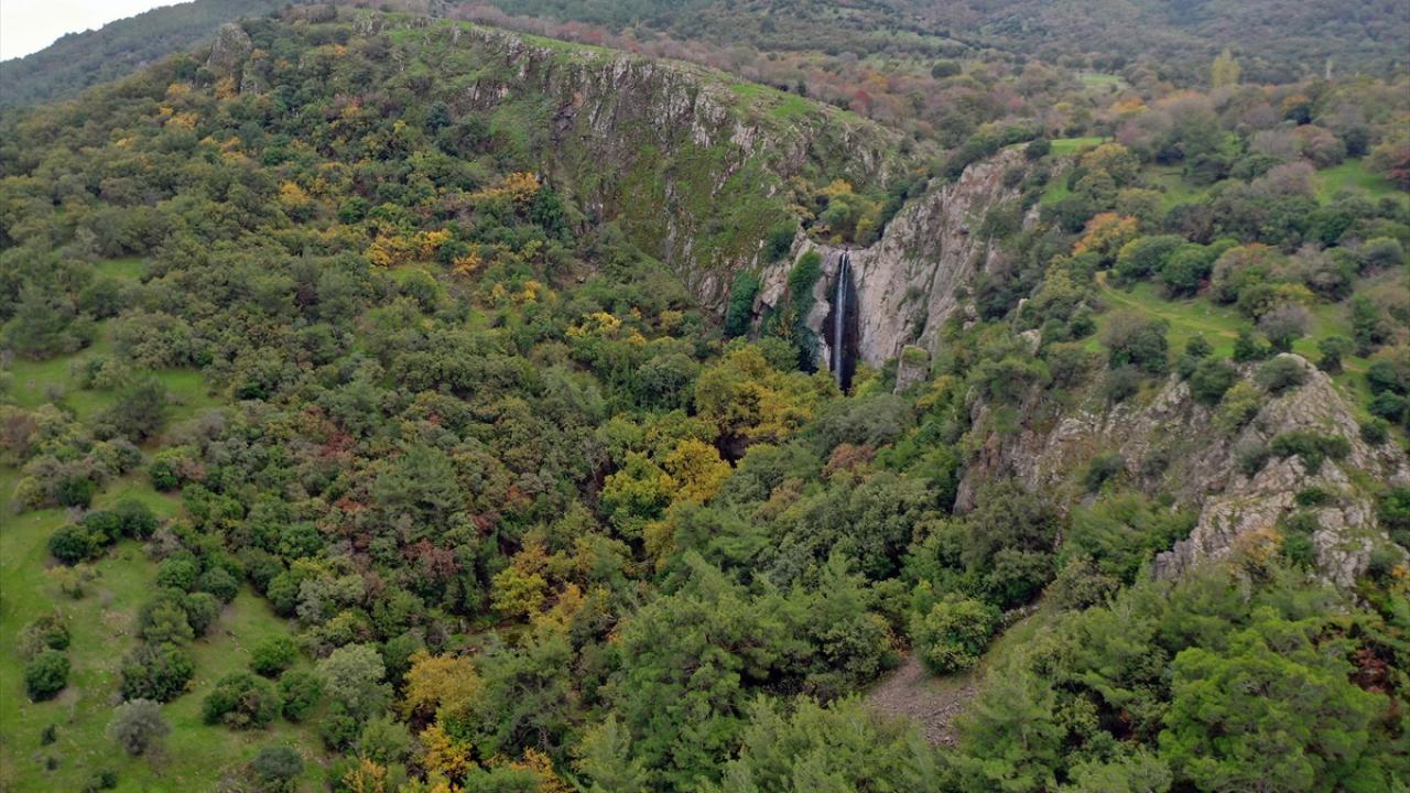 Yunt Dağları`nda yürüyüş yapan doğaseverler, şelaleler çevresinde fotoğraf çekip, sarı, turuncu ve yeşilin tonlarının birleştiği manzaraları ölümsüzleştiriyor.