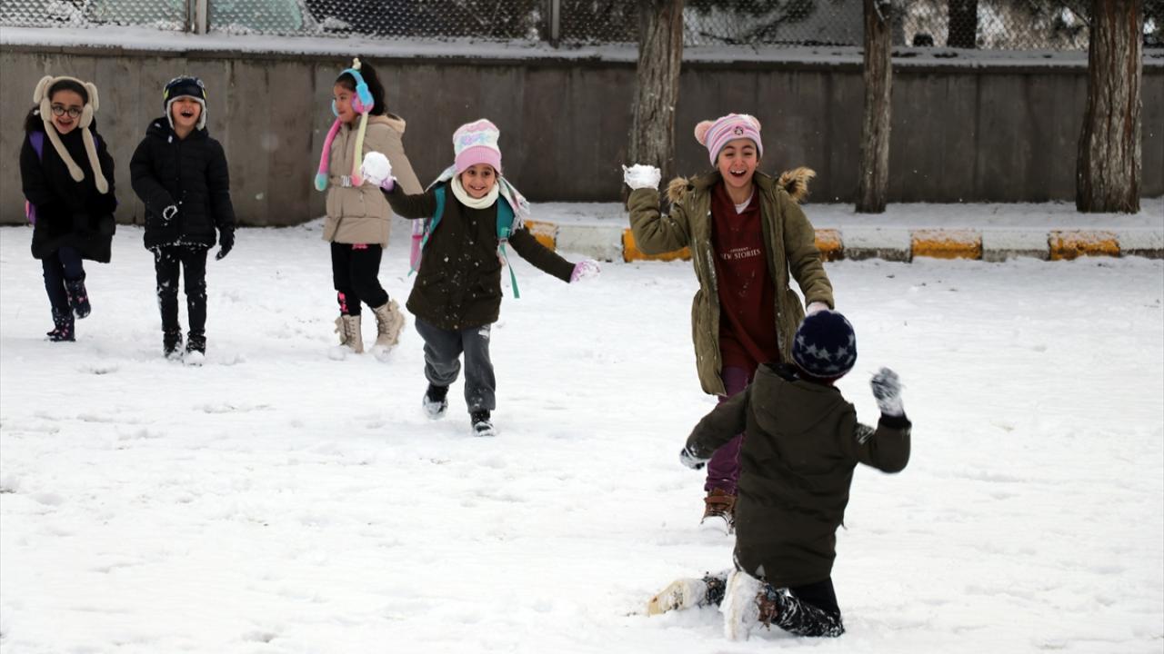 Öğrenciler ise okulun bahçesinde kar topu oynayıp karın tadını çıkardı.