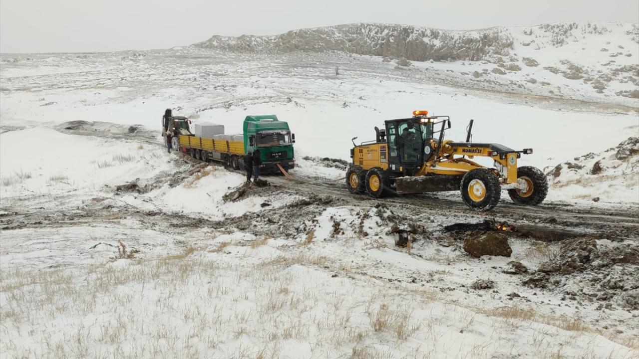 İş makineleriyle yolu açan ekipler, 22 saatlik çalışma sonunda şoför ve araçların güvenli bölgeye ulaşmasını sağladı.