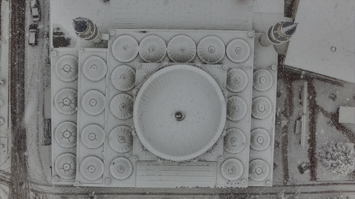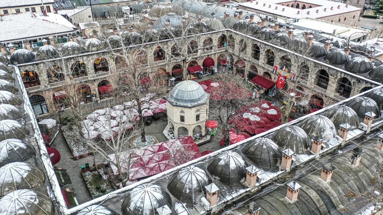 Osmanlı Devleti`nin başkentlerinden olan, tarihi cami, hamam, medrese ve türbeleriyle sivil mimarinin önemli eserlerini barındıran Bursa`da, 1491`de Sultan 2. Bayezid tarafından yaptırılan Koza Han, kar yağışının ardından beyaza büründü.
