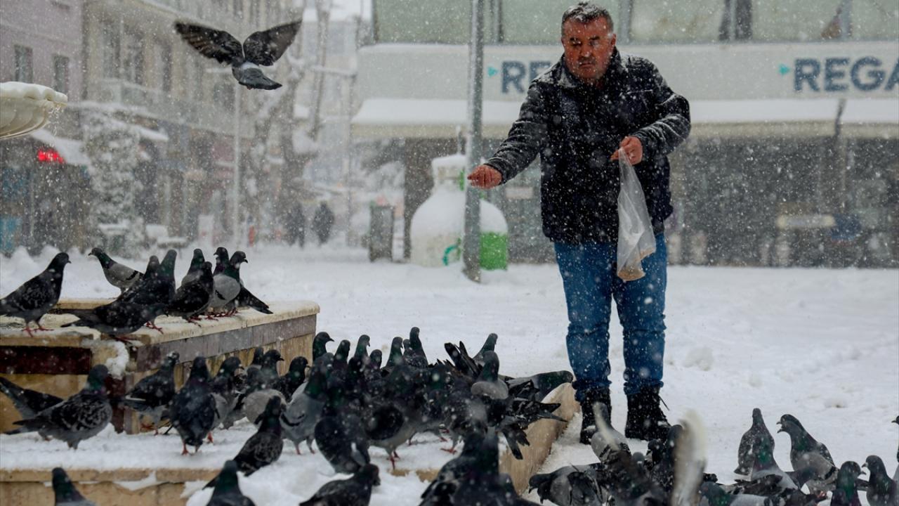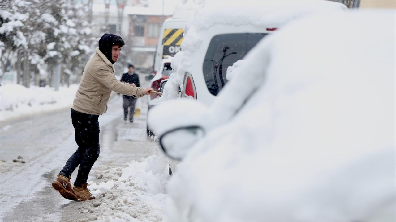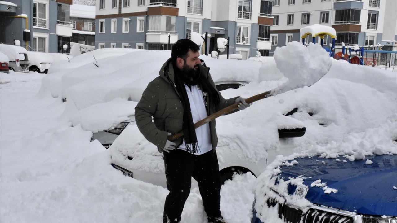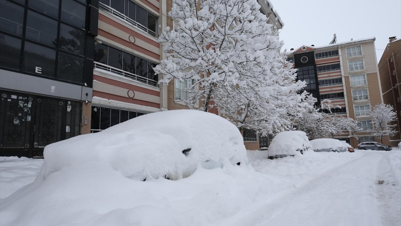Hava sıcaklığının sıfırın altına düştüğü kentte, kar yağışı nedeniyle yollar, çatılar ve araçların üzeri beyaz örtüyle kaplandı.