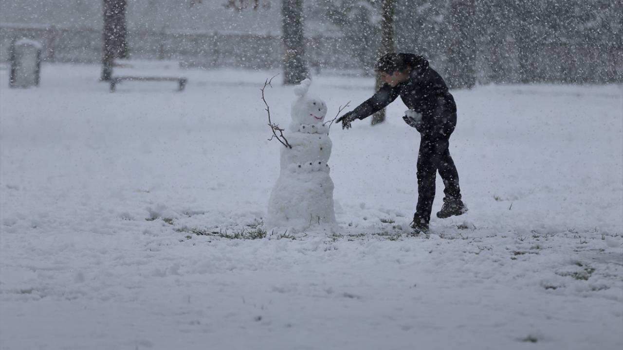 Sakarya`da kar yağışı sonrasında kent merkezindeki Aziz Duran Parkı beyaza büründü. Bazı vatandaşlar kardan adam yaptı.