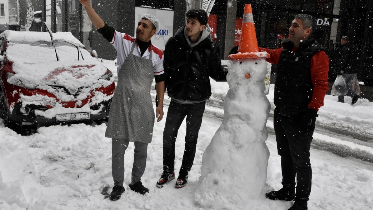 Bazı vatandaşlar, kardan adam yaparak eğlendi.
